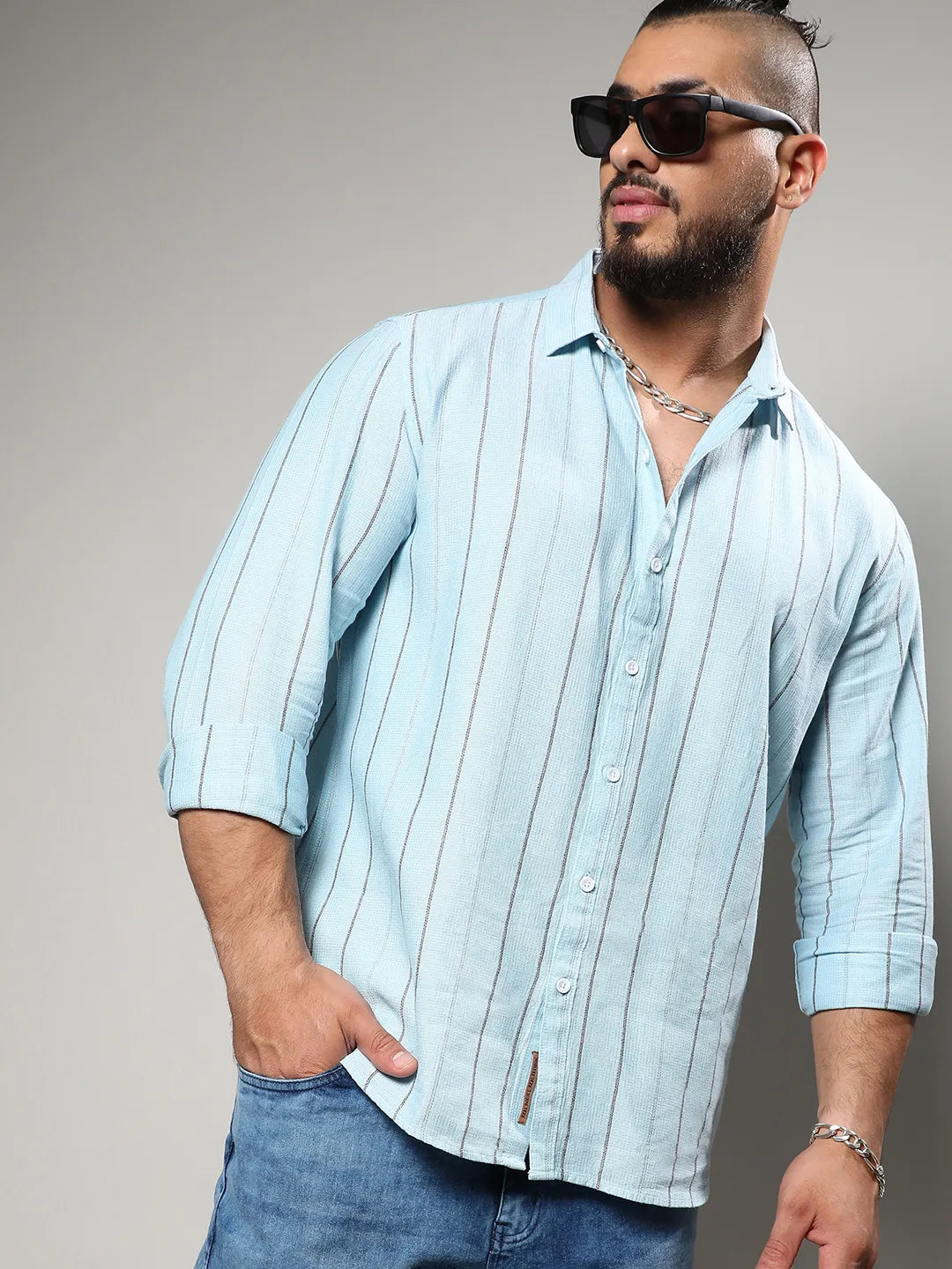 Light Blue Contrast Pinstriped Shirt