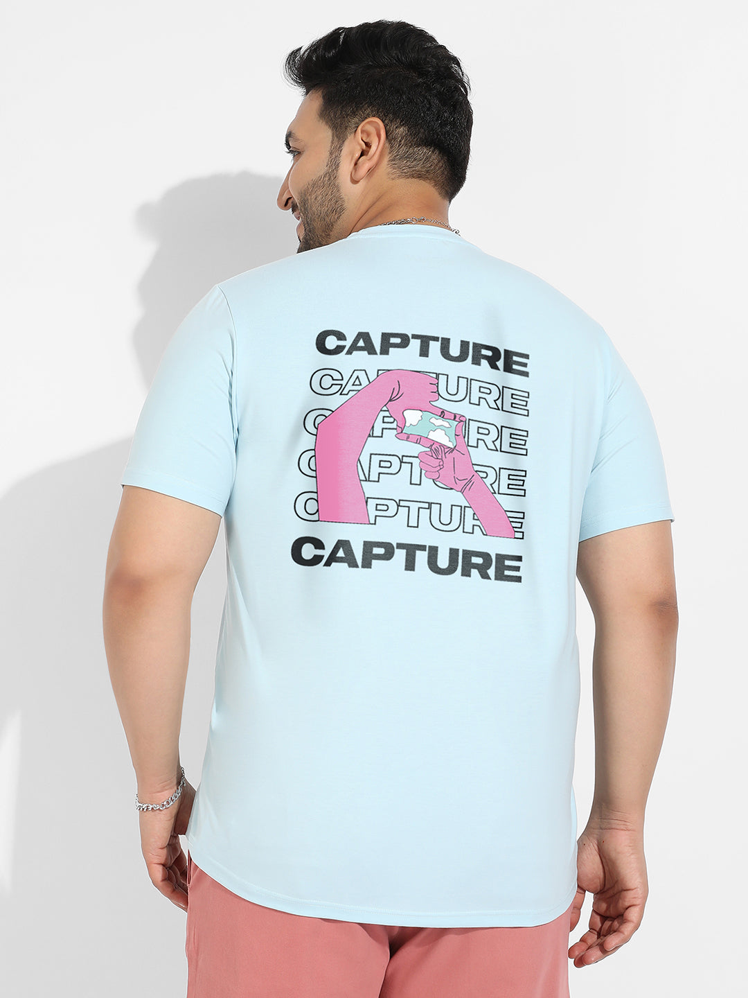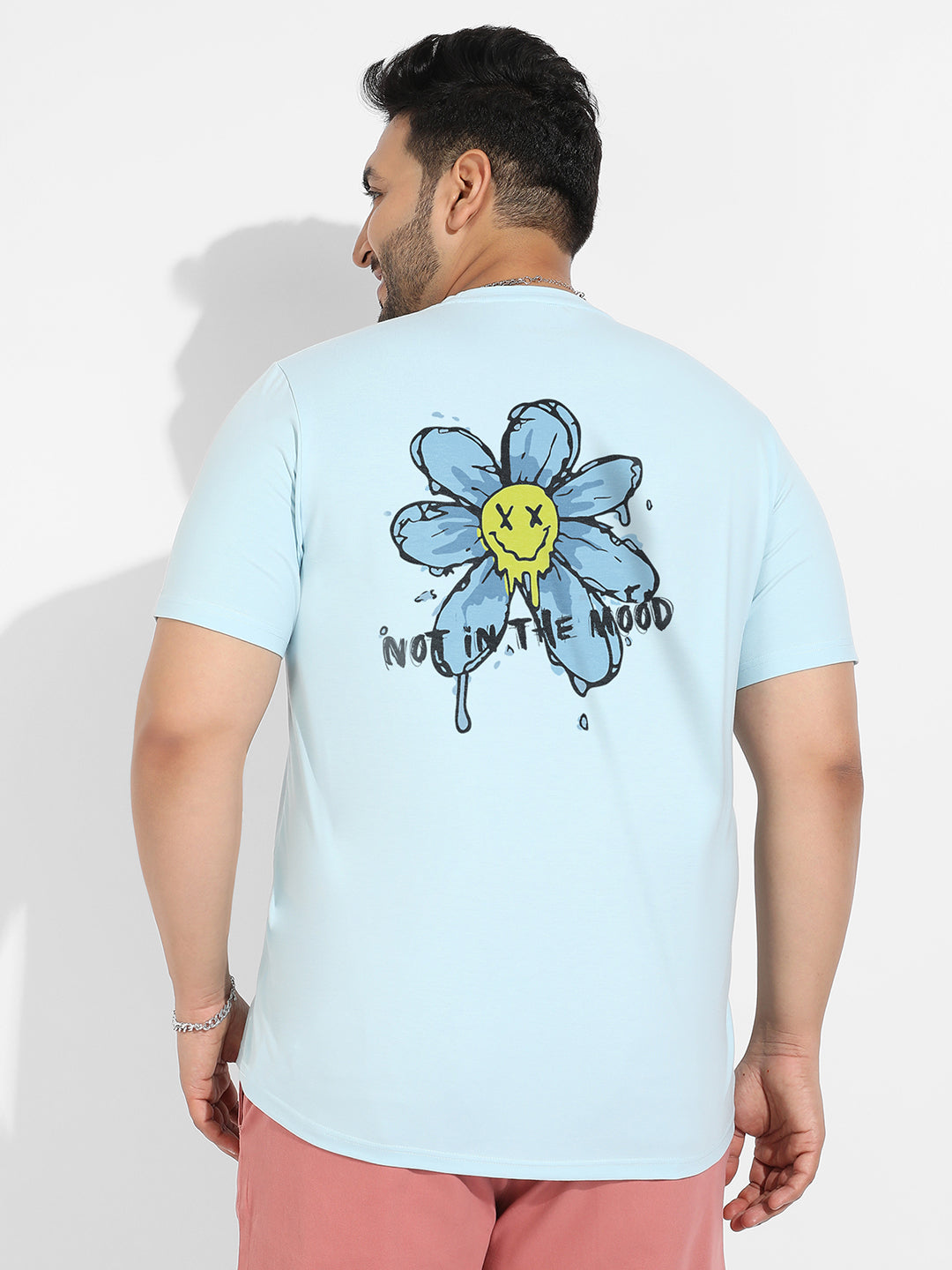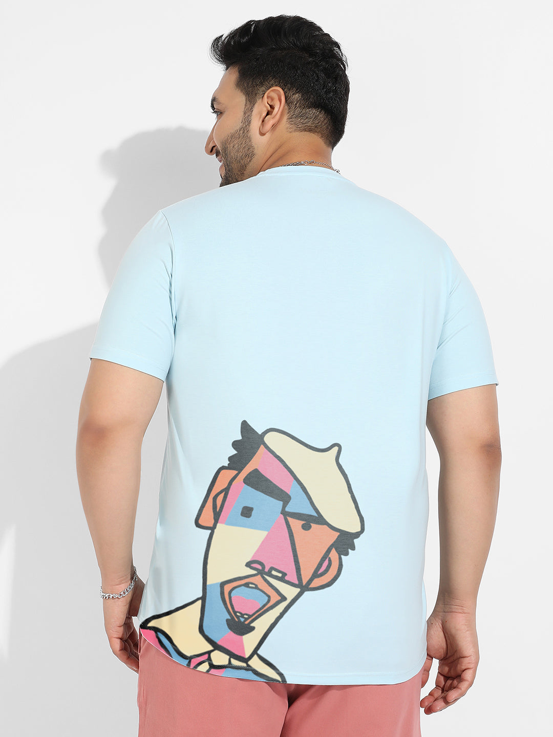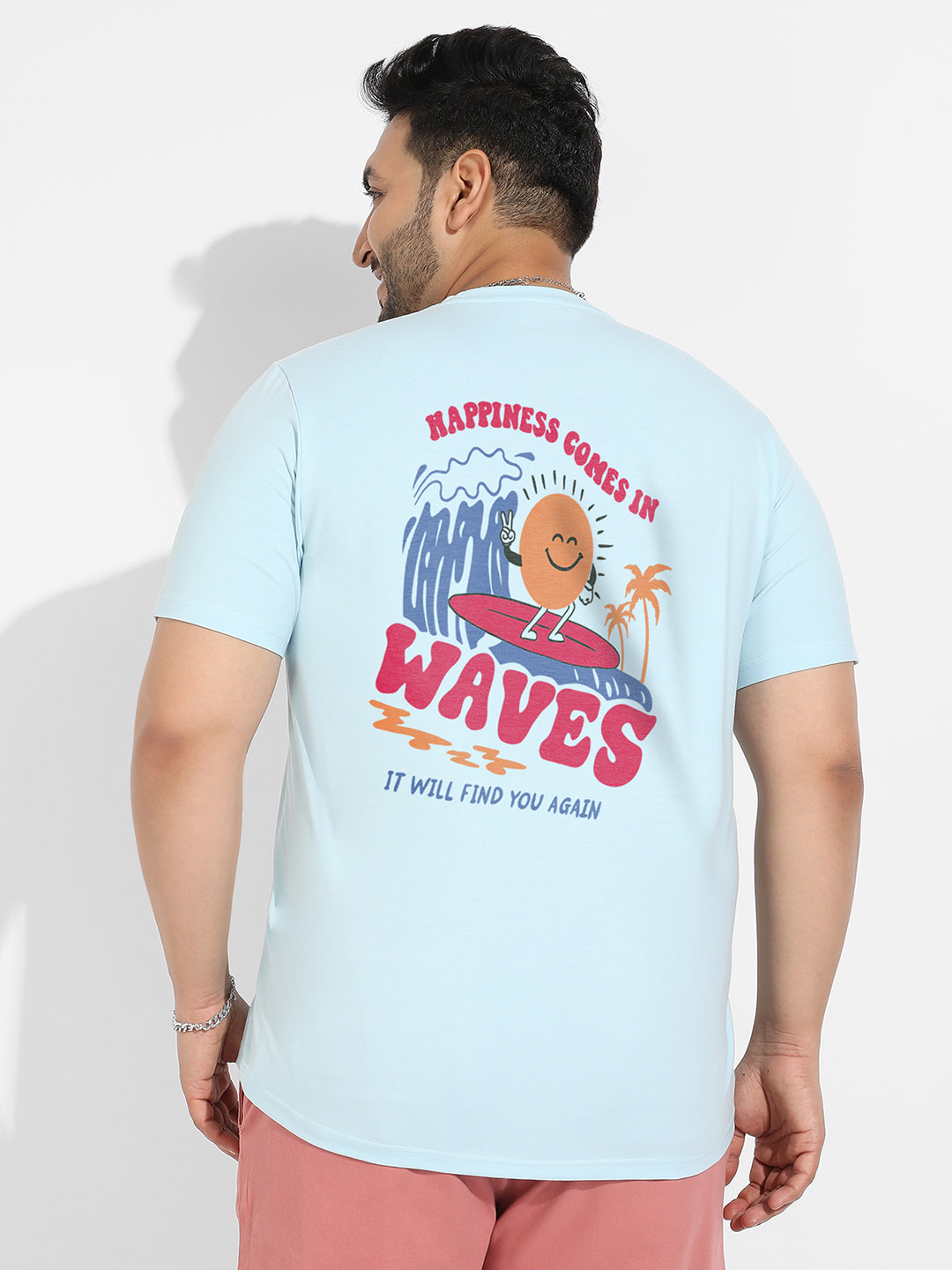 Sky Blue Self-Design Horizontal Striped T-Shirt