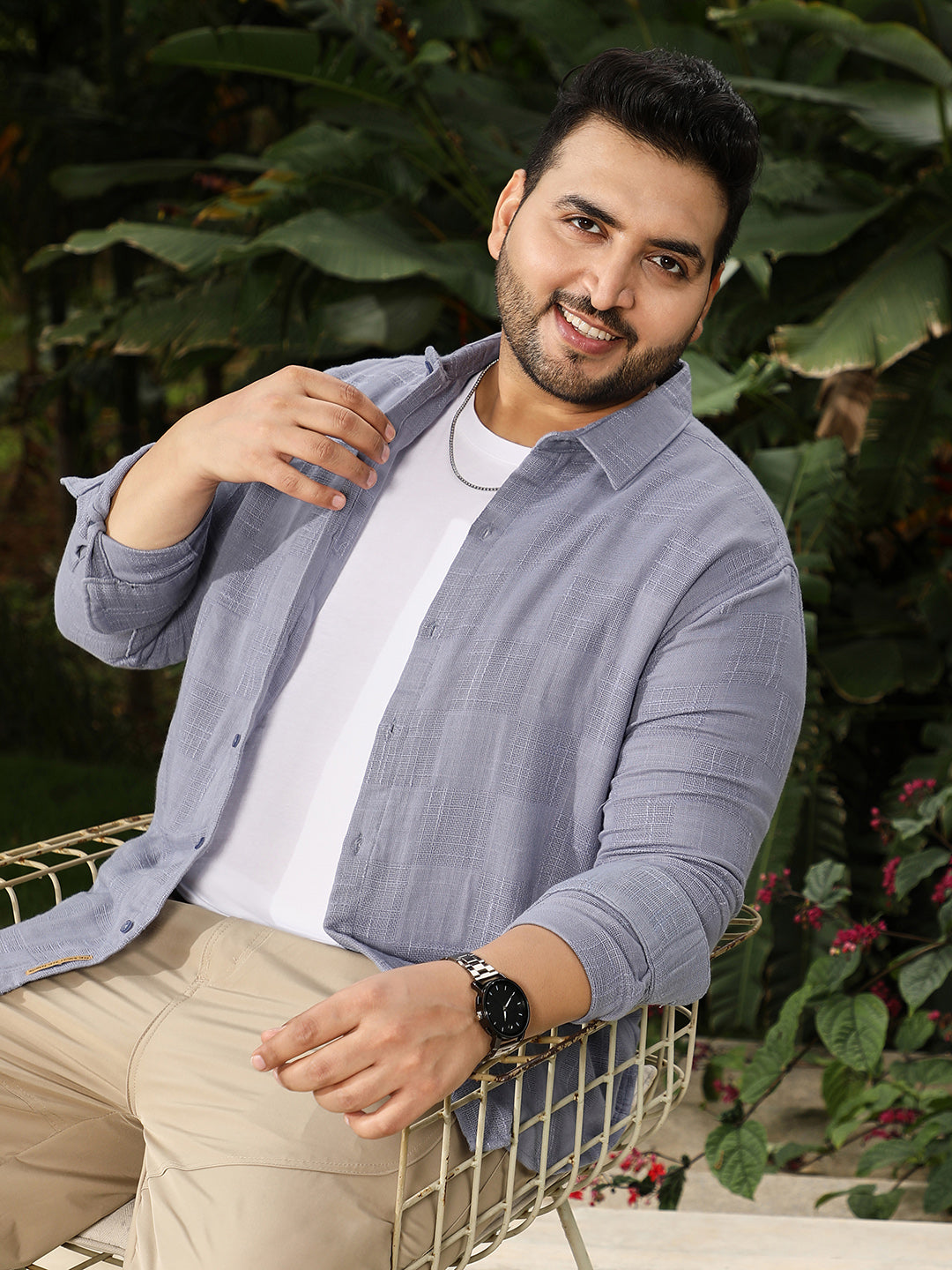 Self-Jacquard Check Shirt