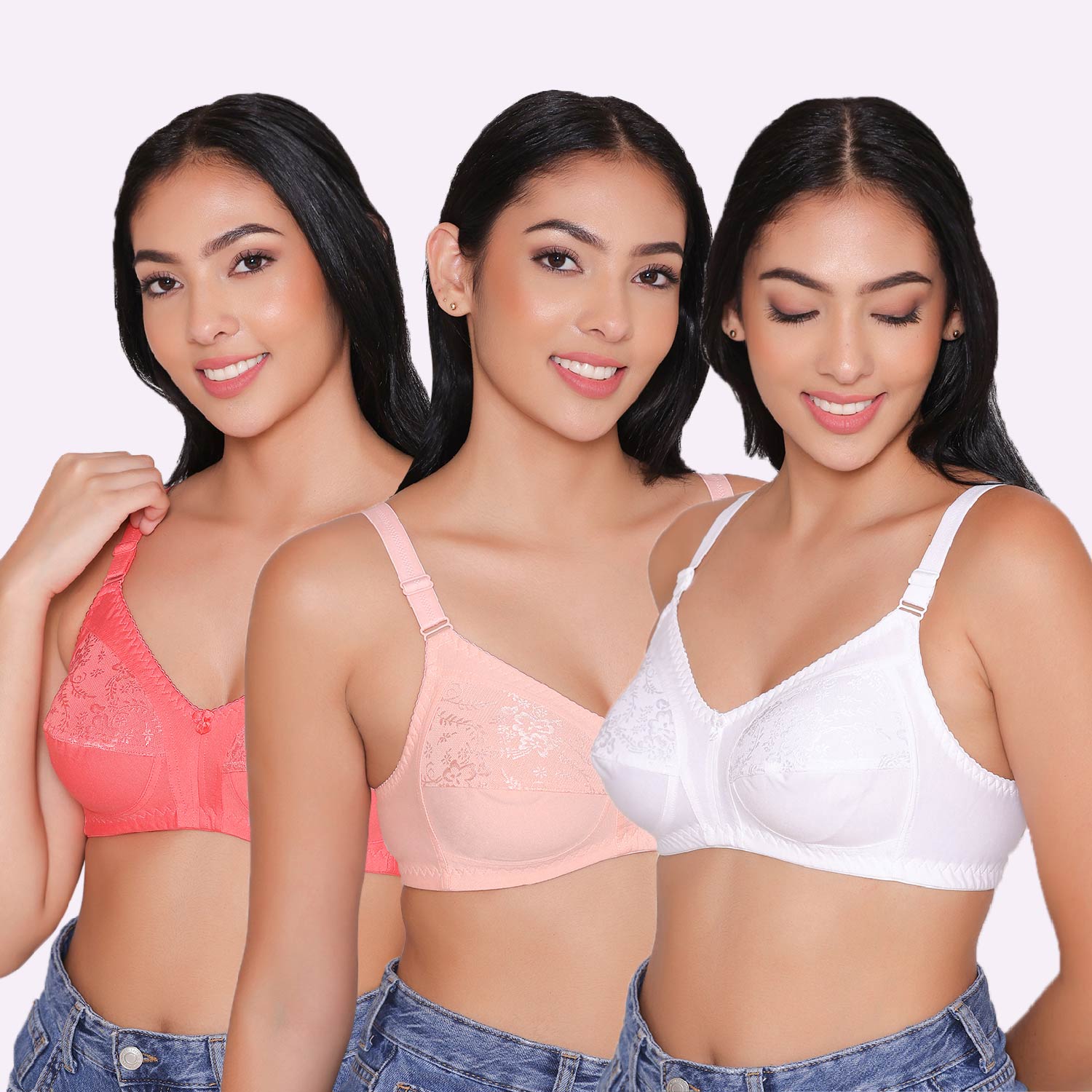 Half Net Non Padded Non Wired Full Coverage Bra (Pack of 3)-IRIS – Parfait Pluss