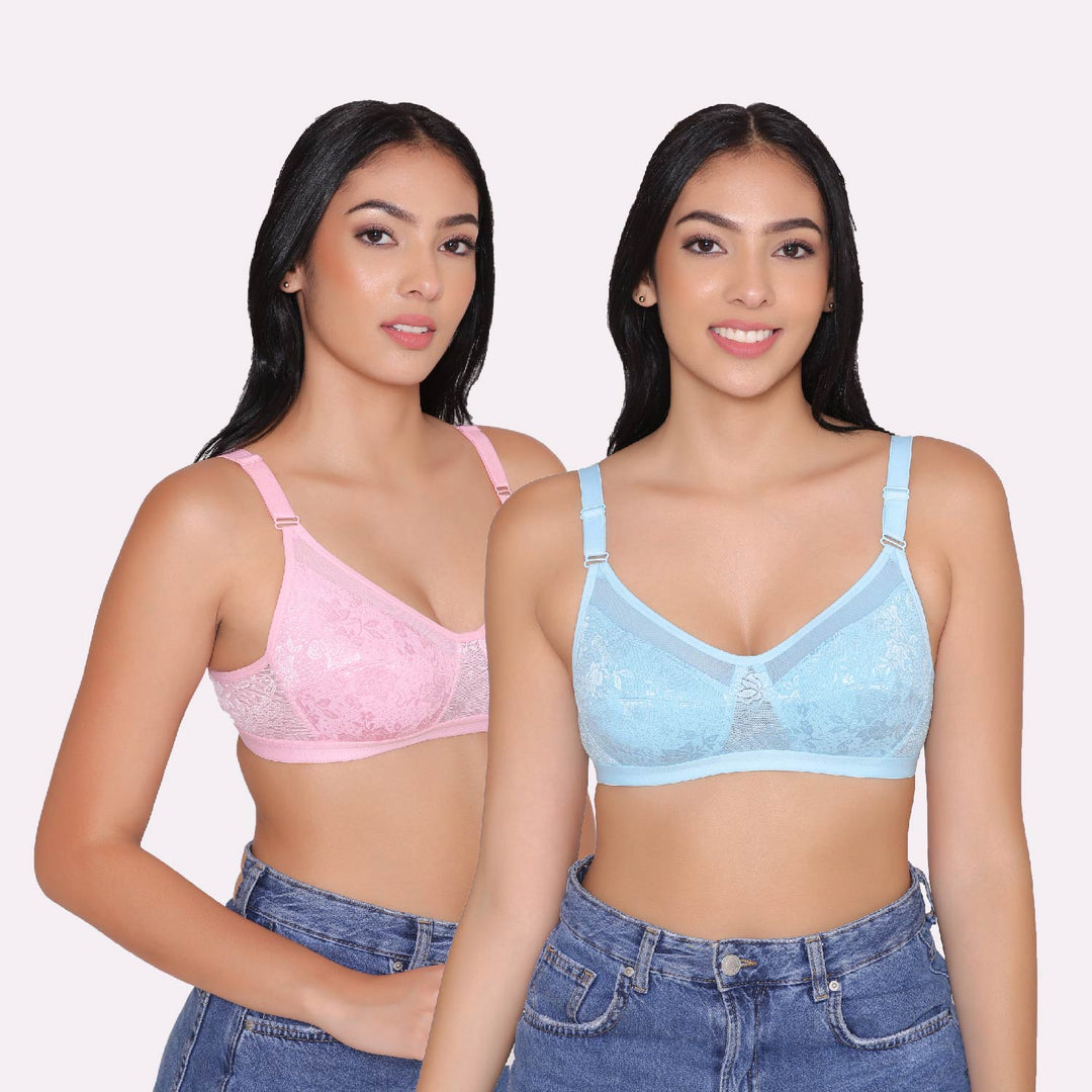 Women's Non Padded Full Coverage Full Net Bra (Pack of 2)-Erin