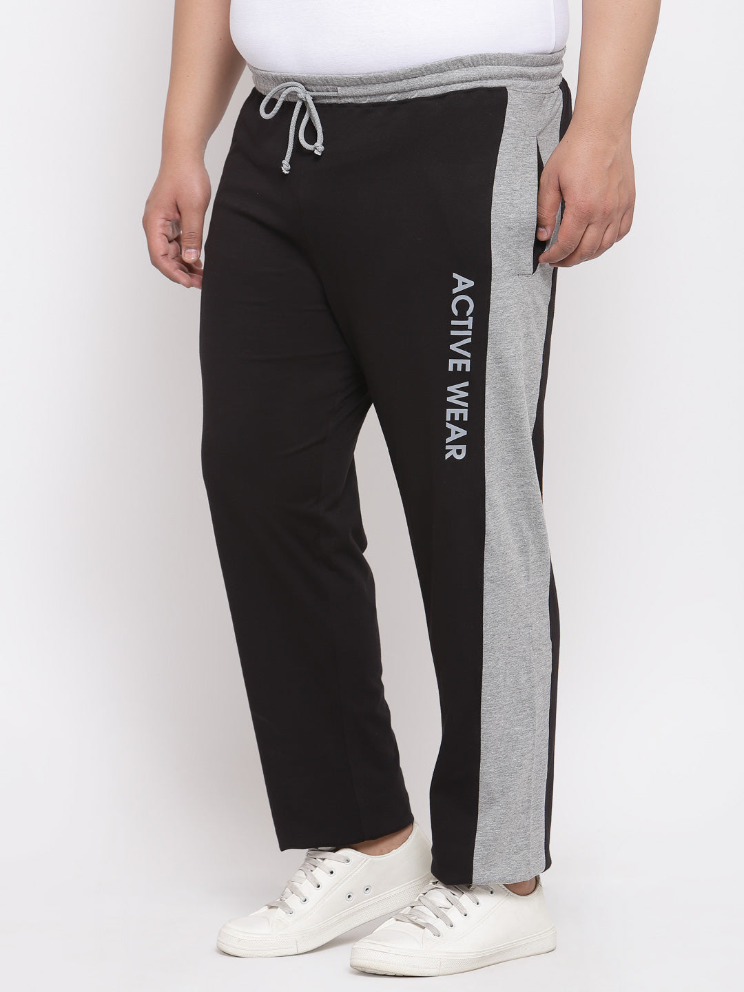 Plus Size Men Black Solid Straight-Fit Track Pants