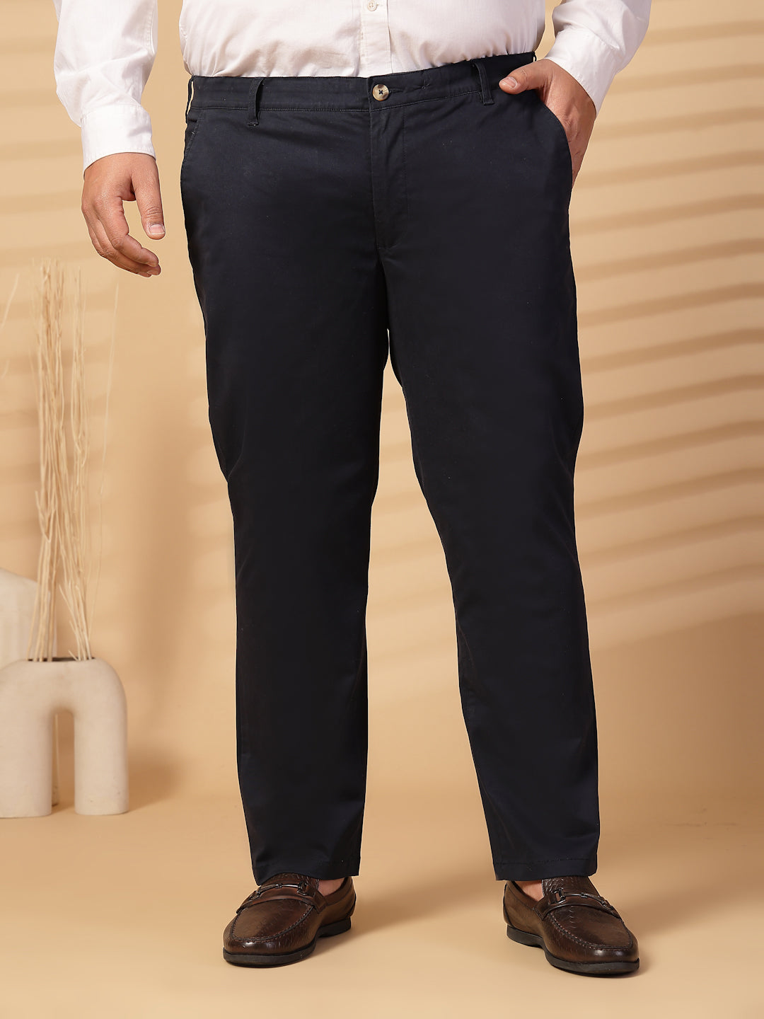 Plus Size Men Regular Fit Mid-Rise Plain Cotton Cargos