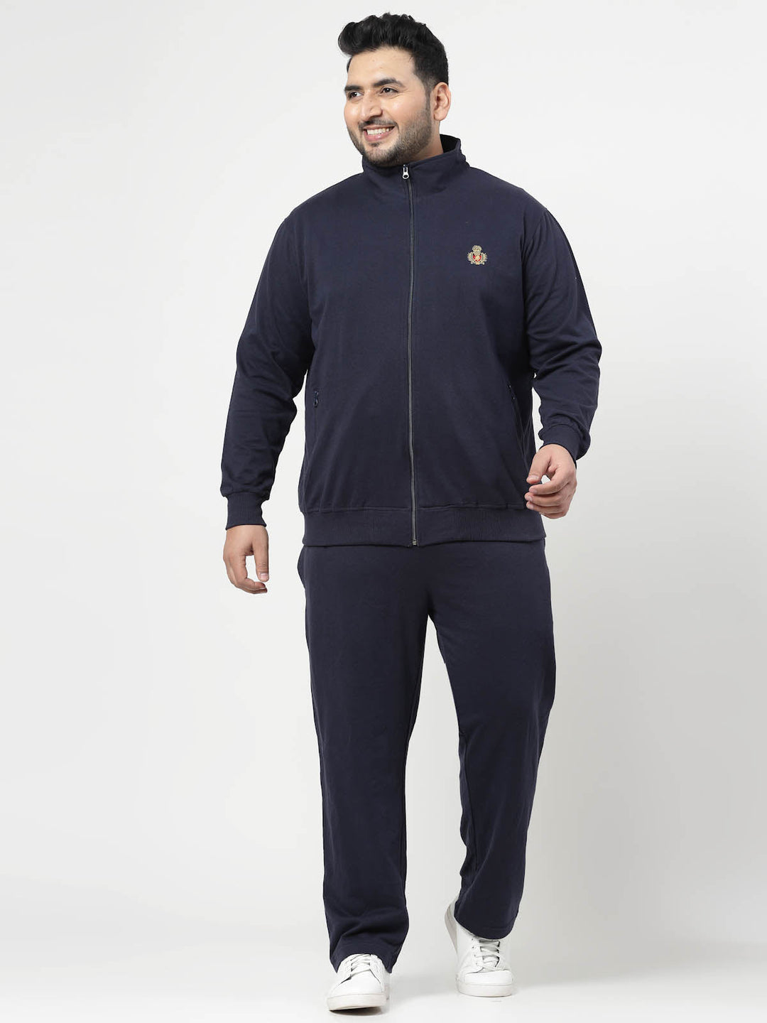 Plus Size Men Navy Blue Solid Straight-Fit Cotton Track Pants