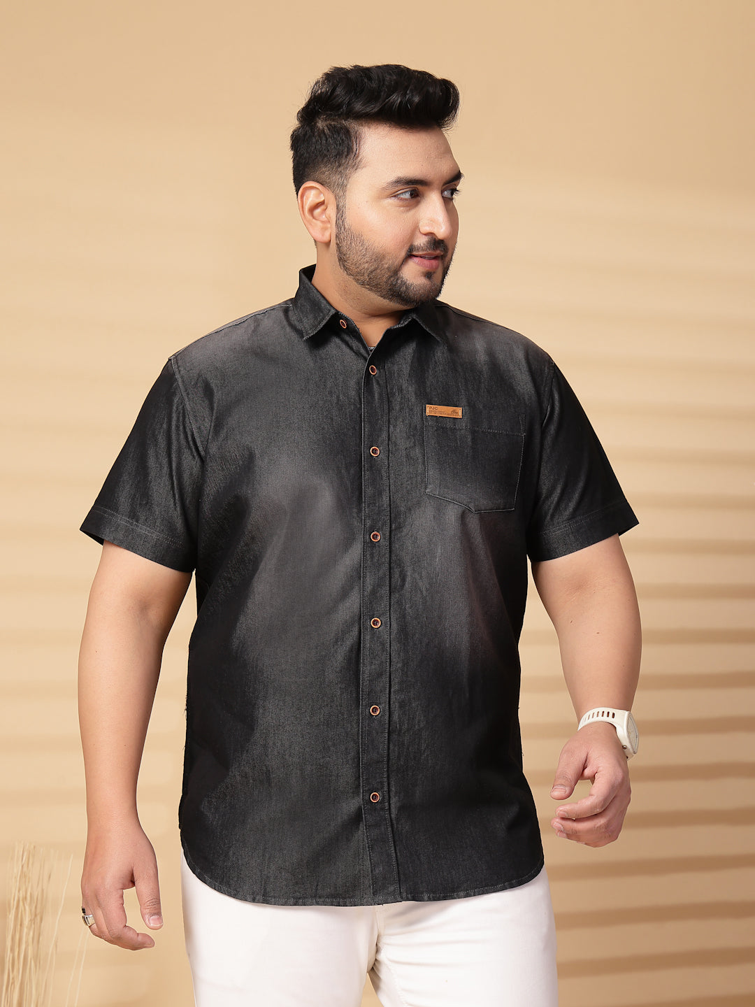 Plus Size Men Charcoal Grey Faded Casual Shirt