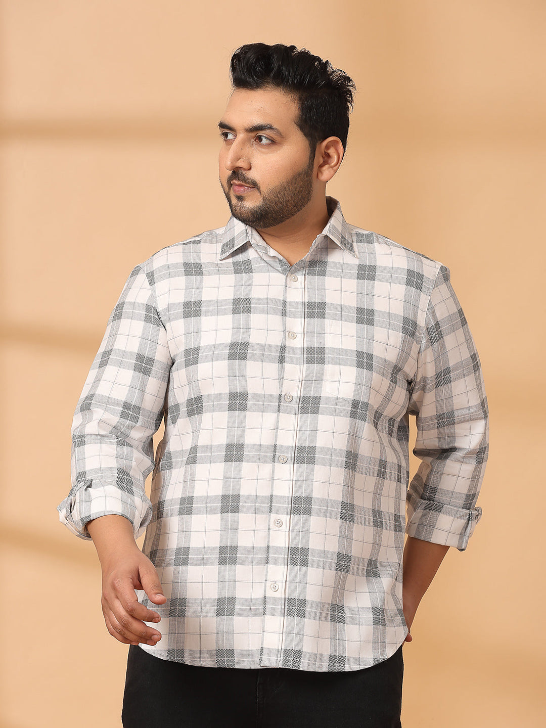 Plus Size Men Spread Collar Tartan Checked Cotton Casual Shirt