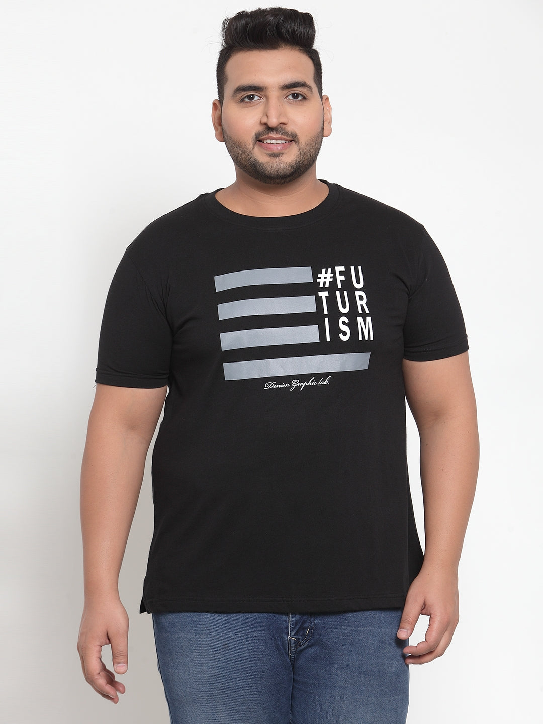 Plus Size Men Black Printed Pure Cotton T-shirt