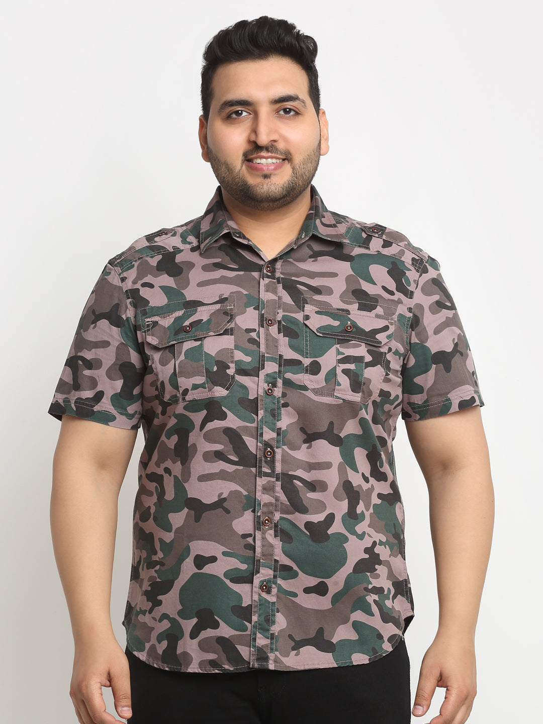 Plus Size Men Printed Round Neck Slim Fit Cotton T-shirt