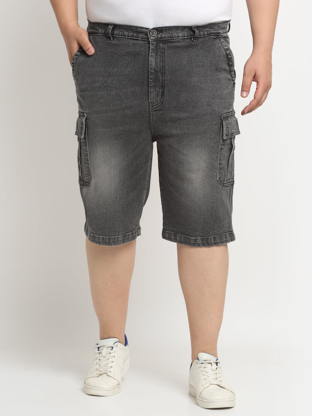 Plus Size Men Washed Mid Rise Cotton Denim Shorts
