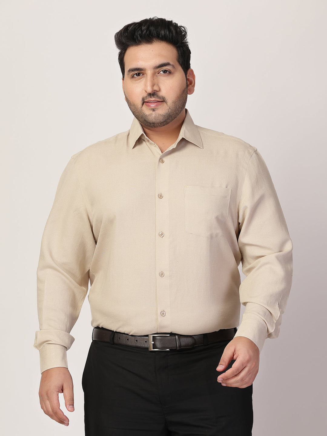 Plus Size Men Beige Comfort Regular Fit Solid Formal Shirt