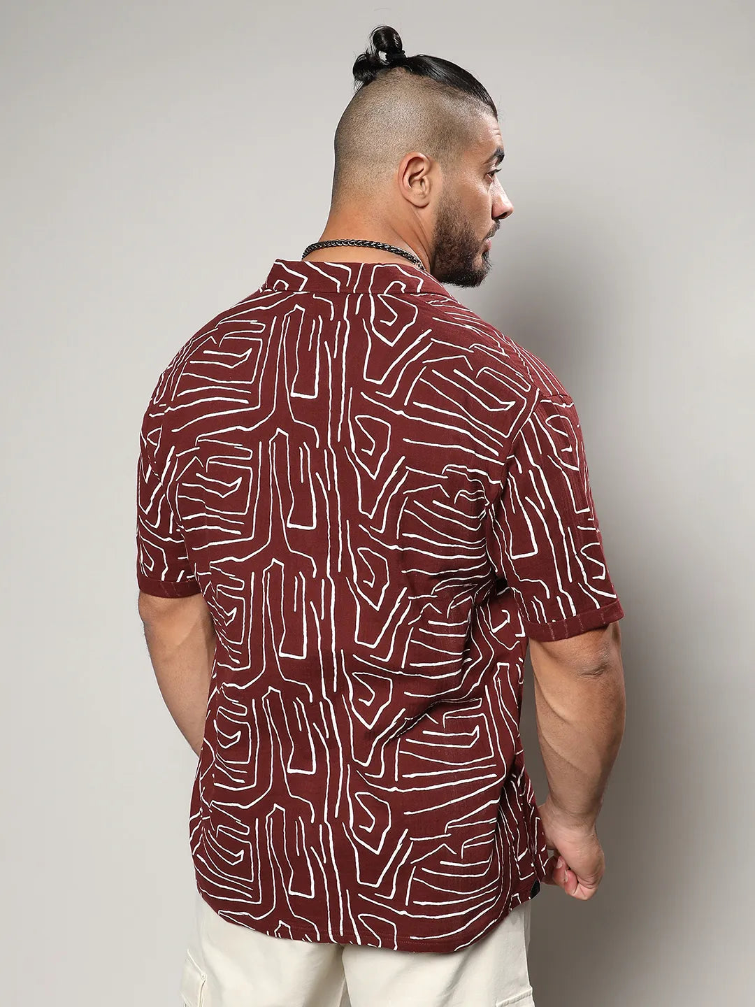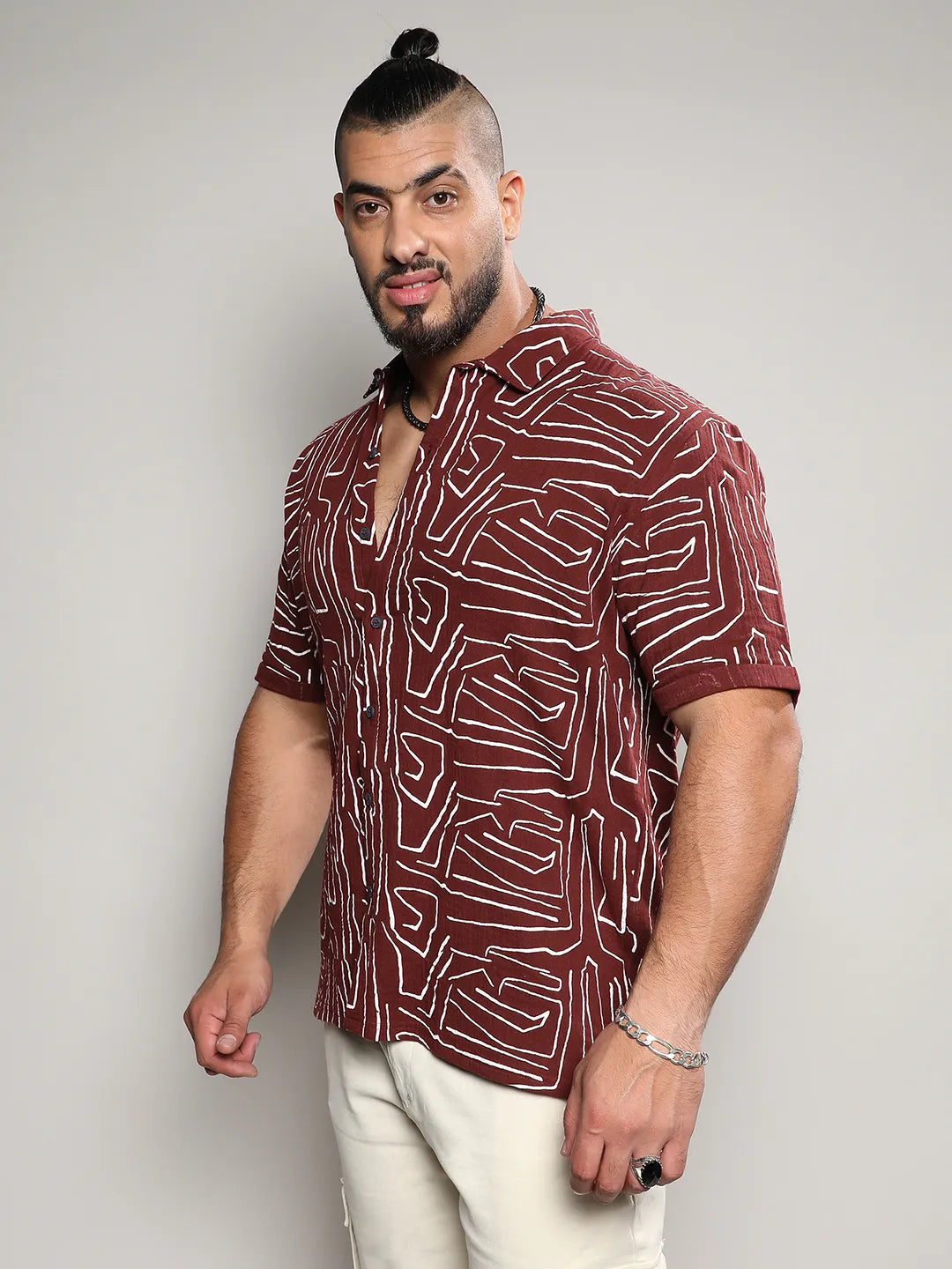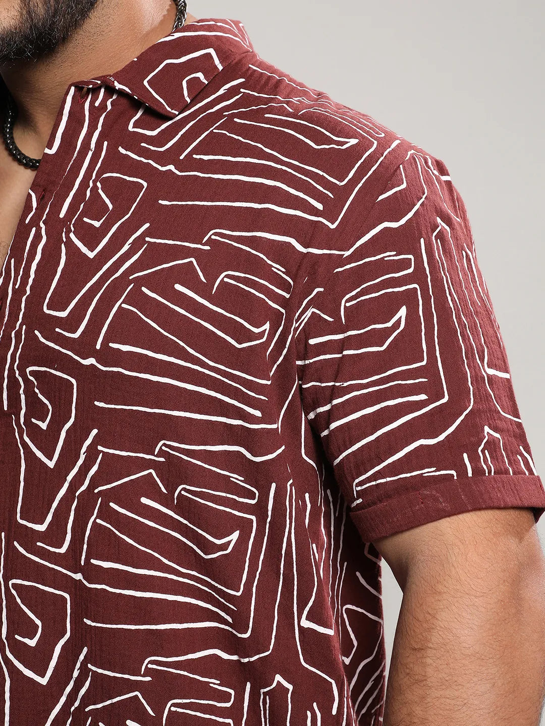 Maroon Red Abstract Lines Print Shirt – Parfait Pluss