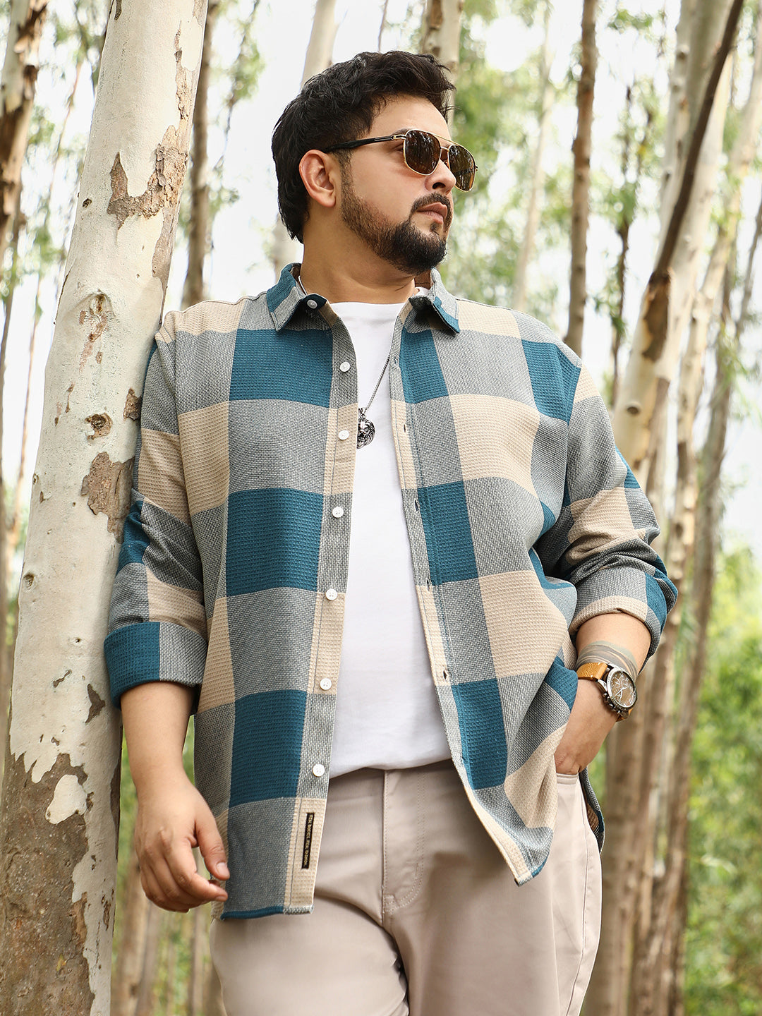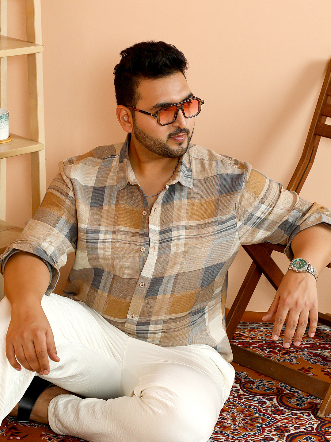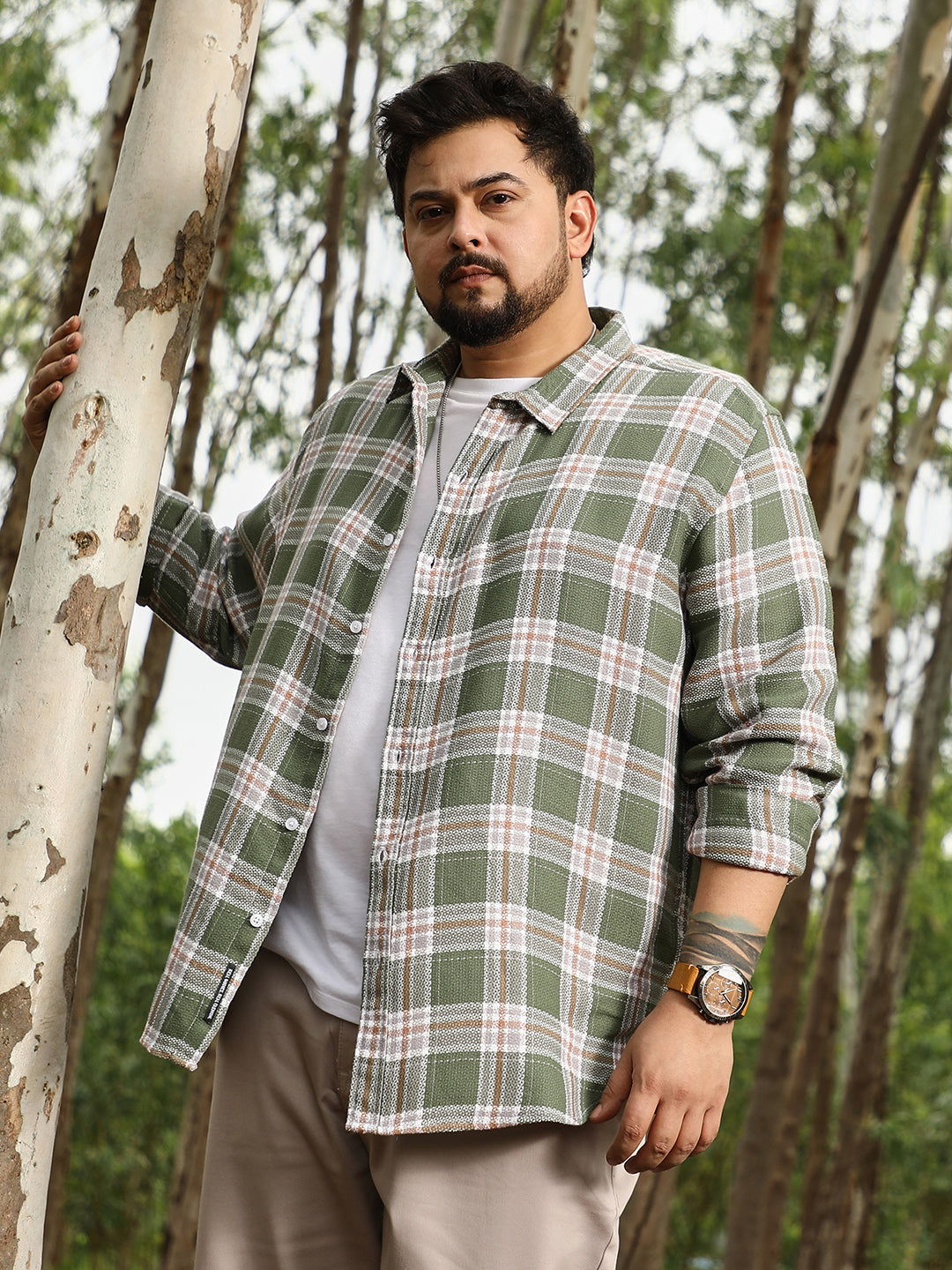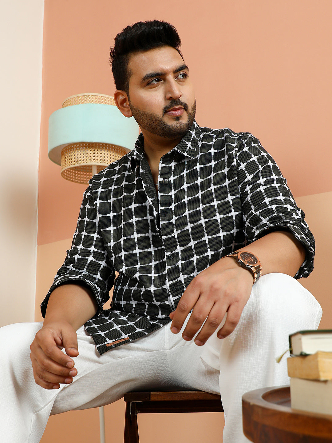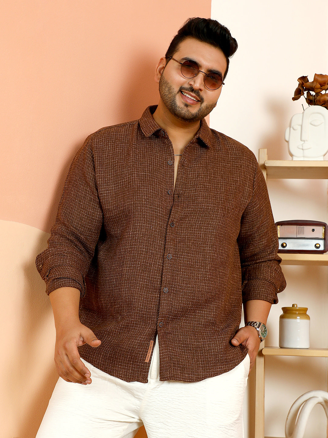 Contrast-Woven Grid Shirt