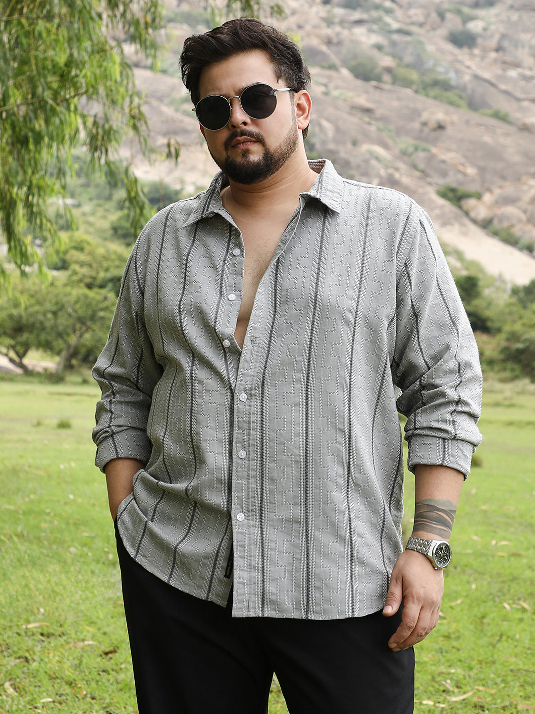 Geo-Stripe Jacquard Shirt