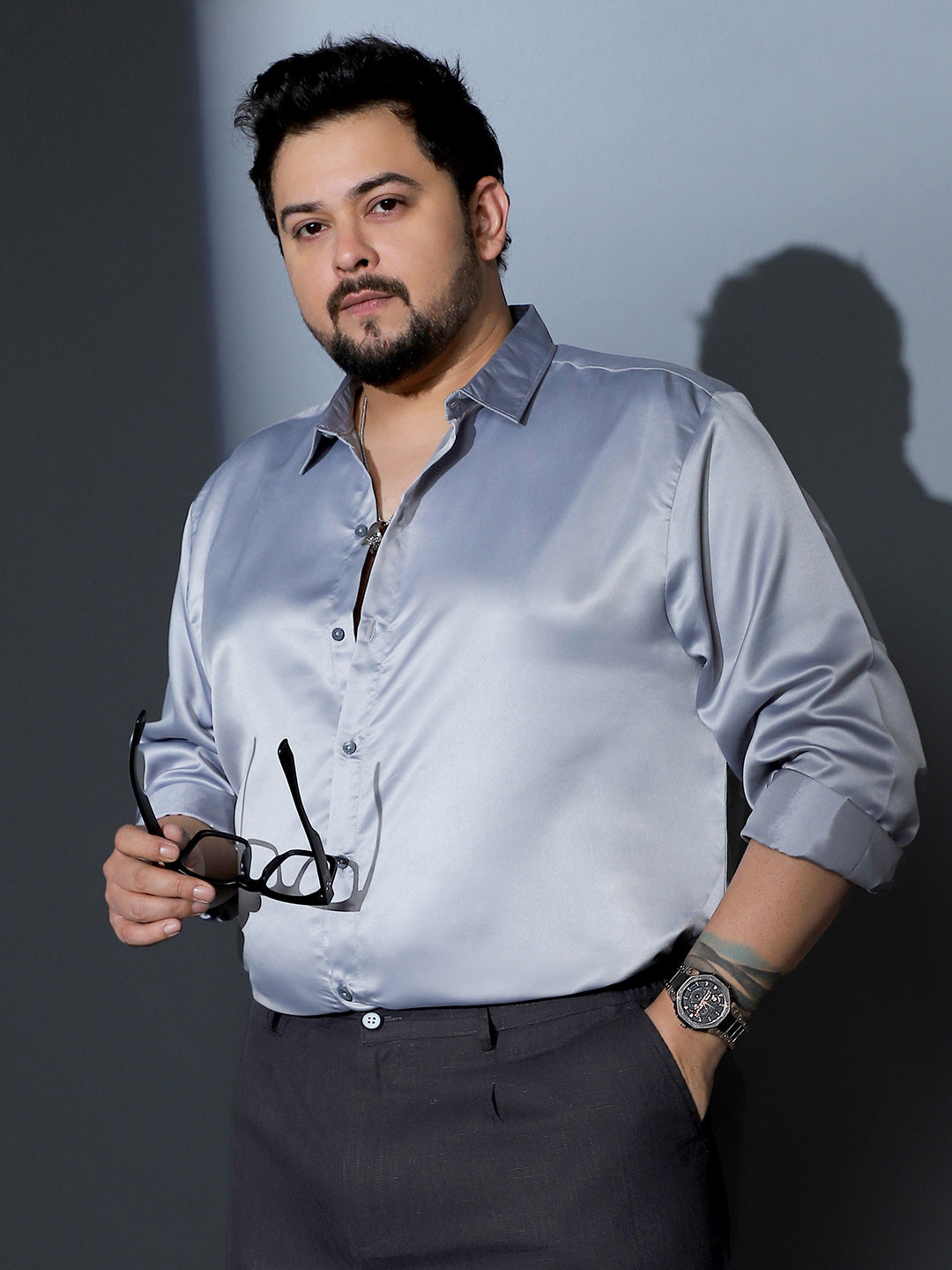 Solid-Satin Regular Shirt