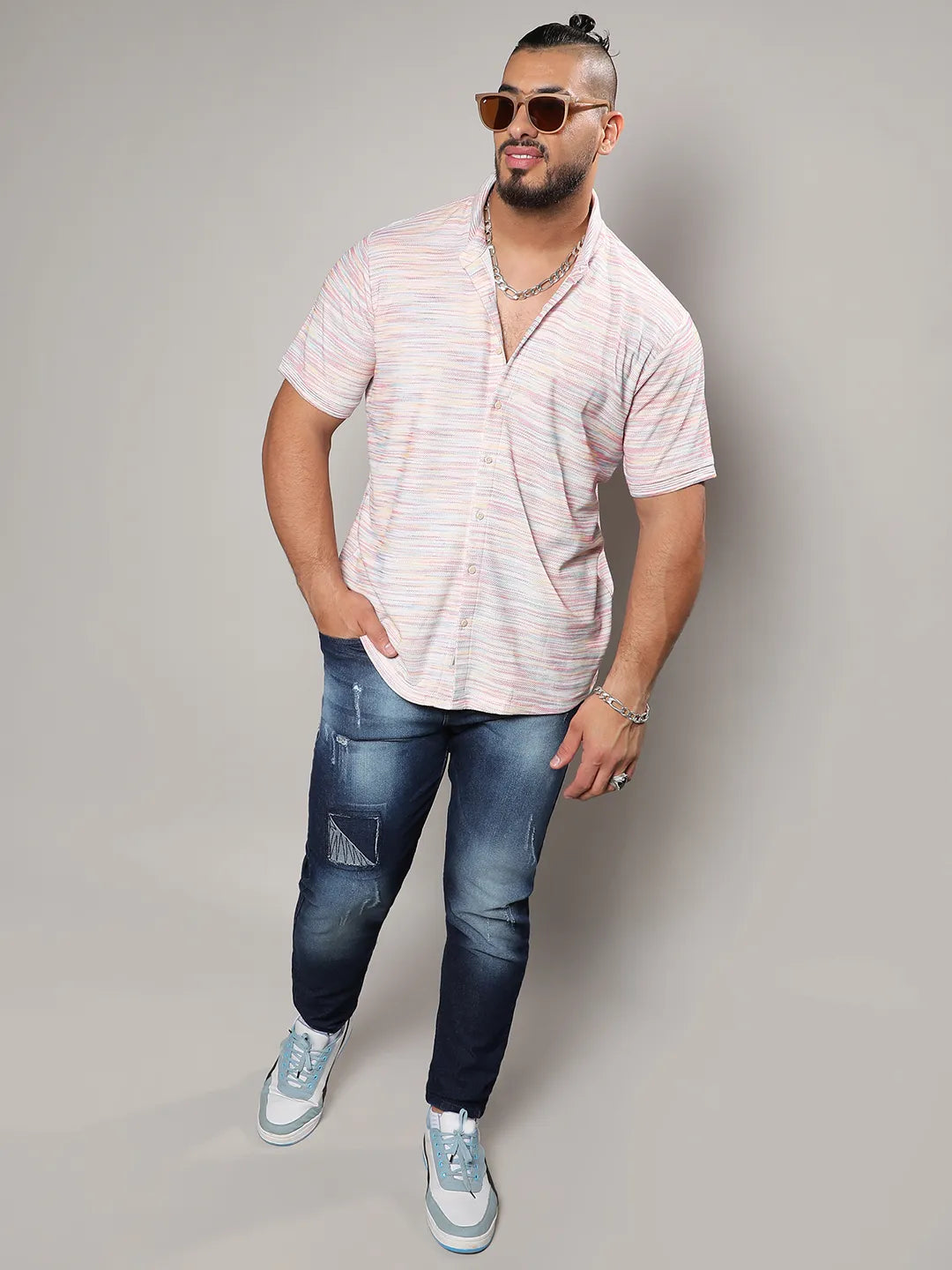 Blush Pink Textured Horizontal Striped Shirt