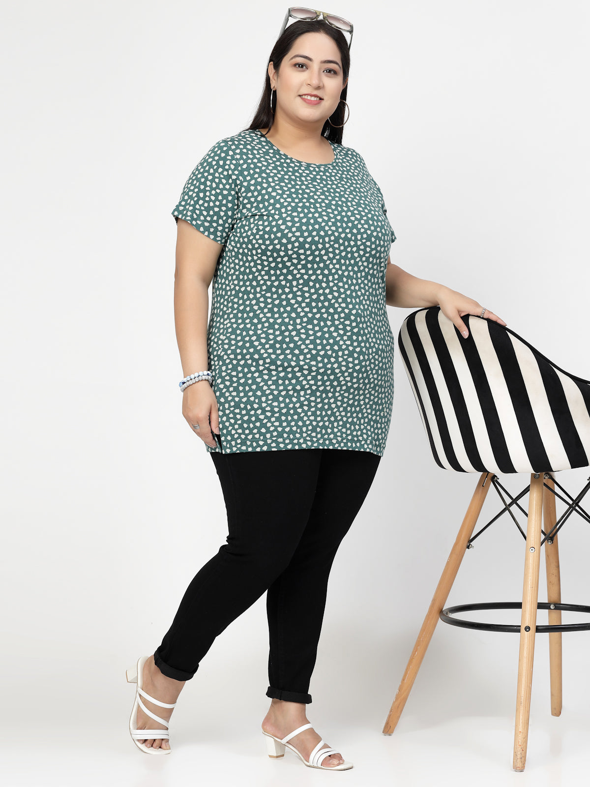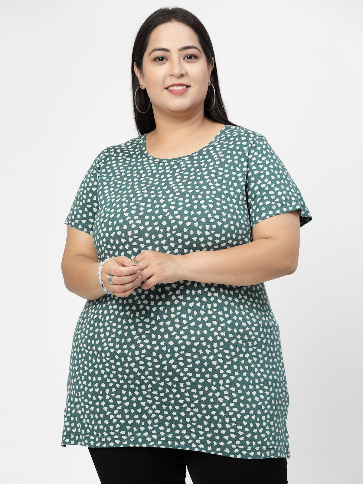 Plus Size Conversational Printed Round Neck Cotton T-shirt