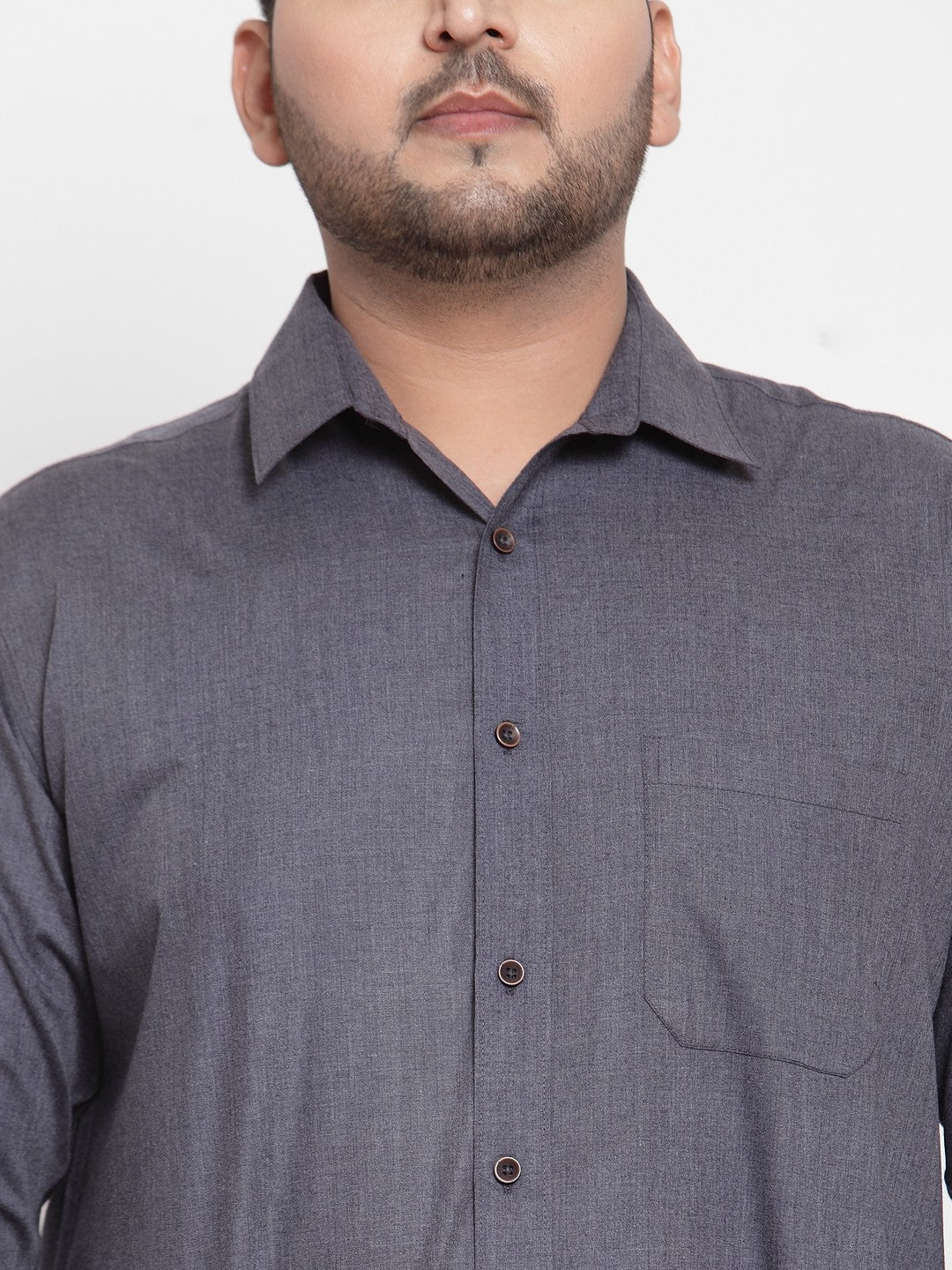 Plus Size Men Grey Regular Fit Self Design Casual Shirt