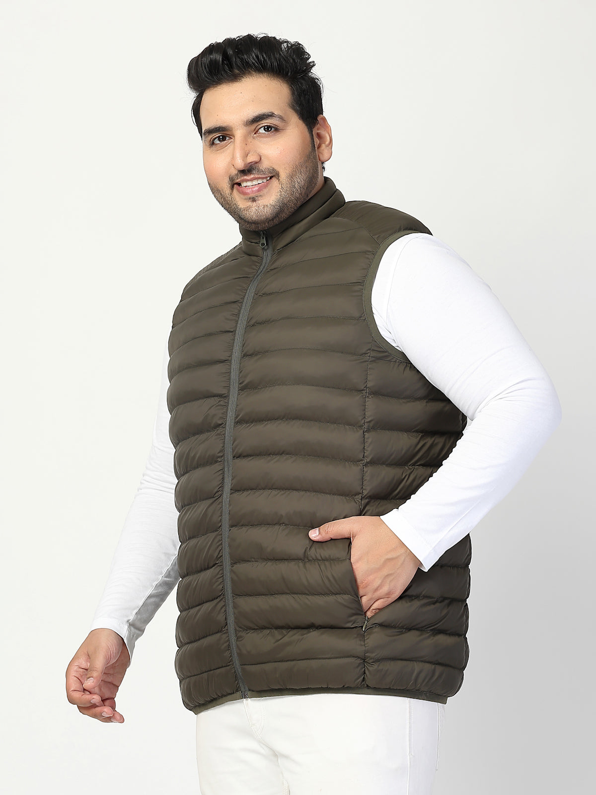 Men Plus Size Open Front Quilted Sleeveless Puffer Jacket