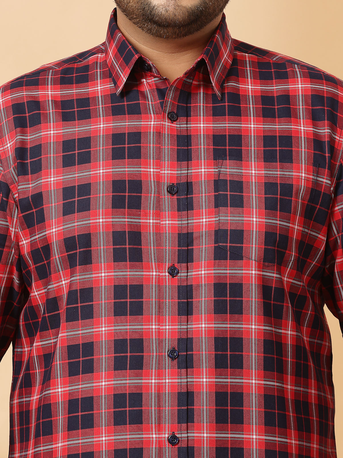 Plus Size Men Spread Collar Tartan Checked Cotton Casual Shirt