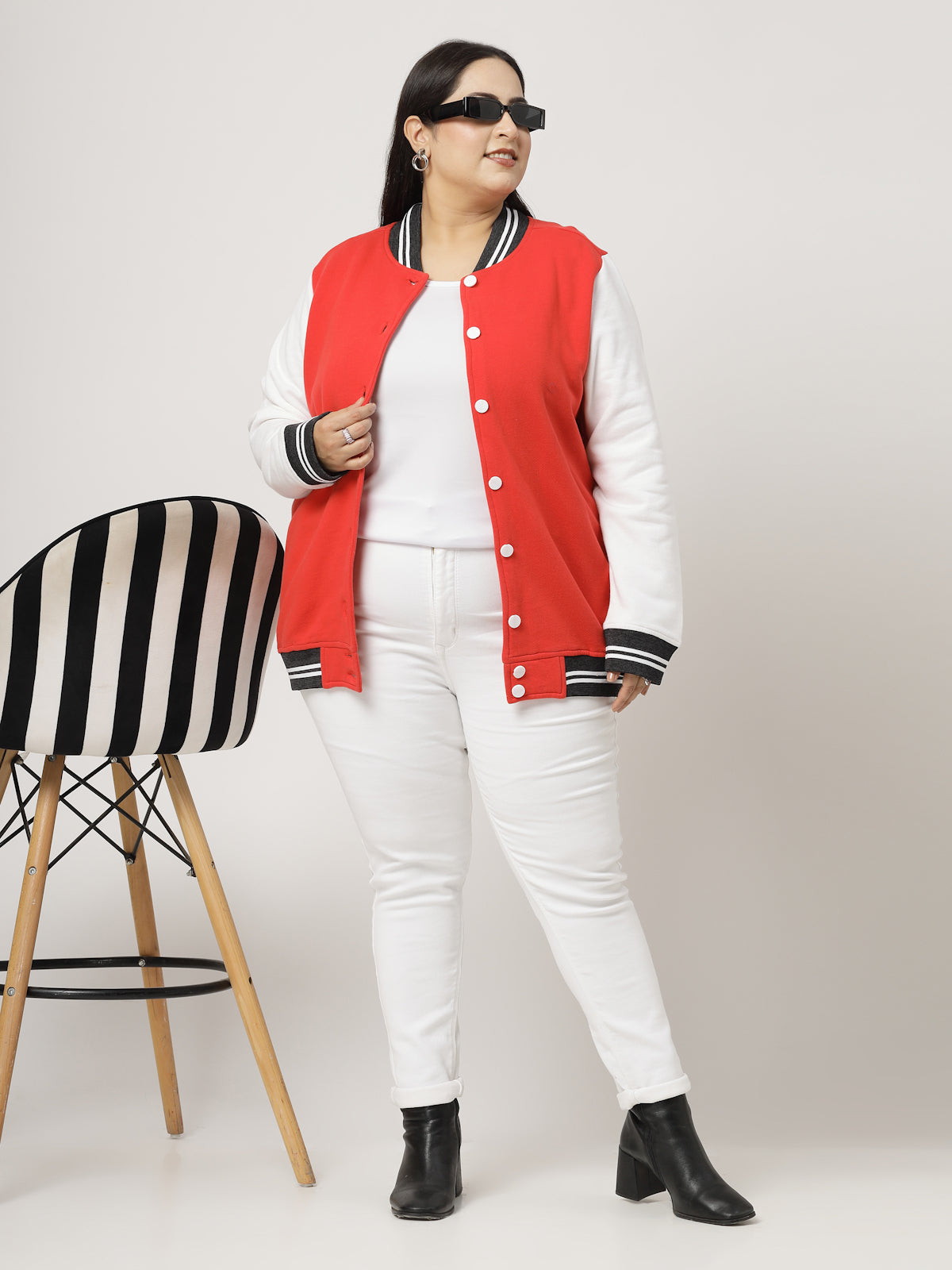 Plus Size Women Colourblocked Fleece Crop Bomber Jacket