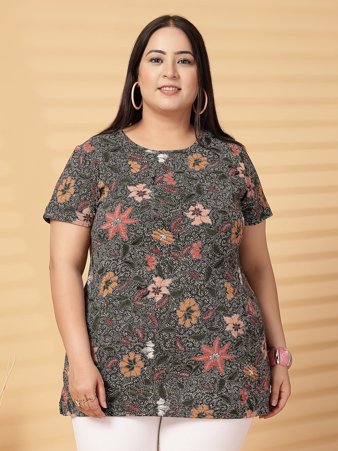 Plus Size Women Floral Printed T-shirt