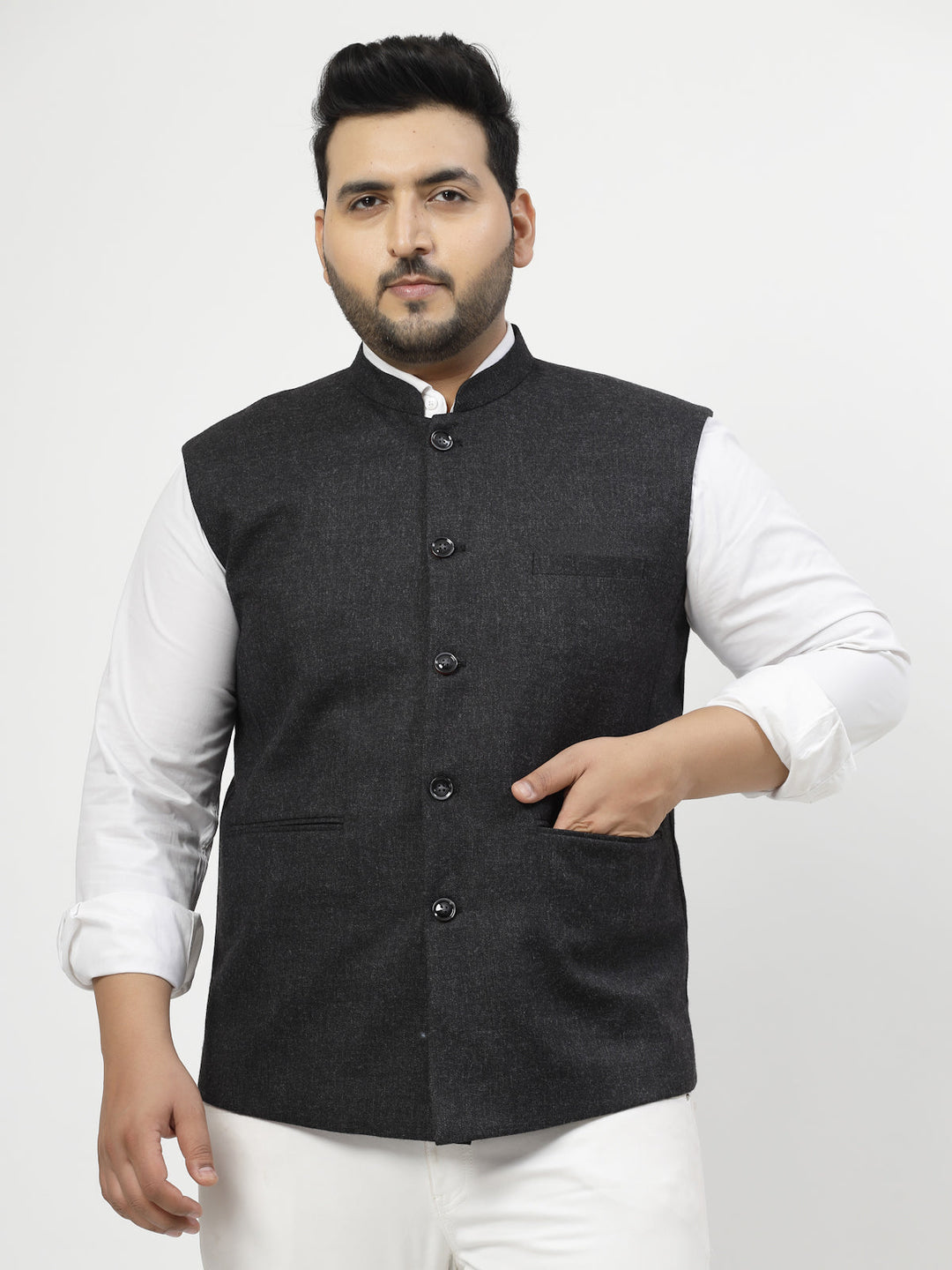 Plus Size Mandarin Collar Woven Nehru Jacket