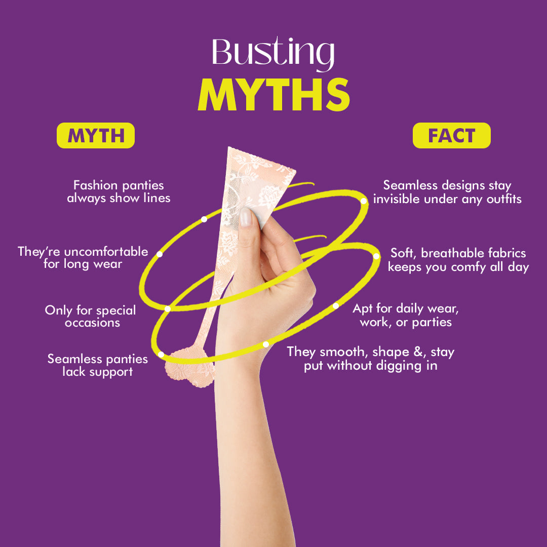 Reusable Fashion Panties offer a comfortable solution for providing seamless look with no visible panty lines under bottom wear. Made from skin-friendly, hypoallergenic, and stretchable materials. These panties fit perfectly to your skin while remaining gentle and irritation-free. These panties are made with hot-pressed edging and no stitching, which is suitable even for delicate skin.