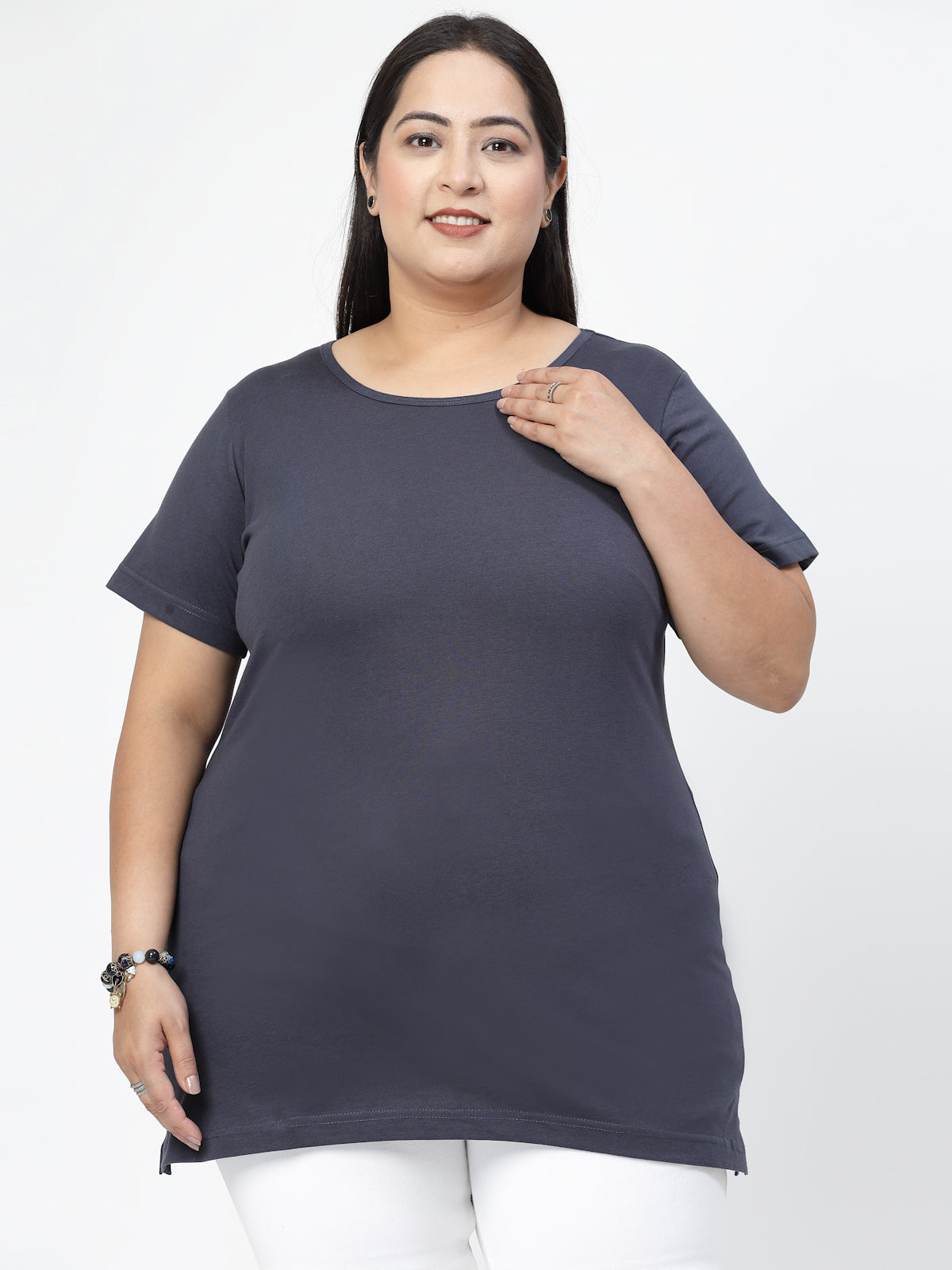 Round Neck Short Sleeves Cotton Regular Fit Plus Size T-shirt