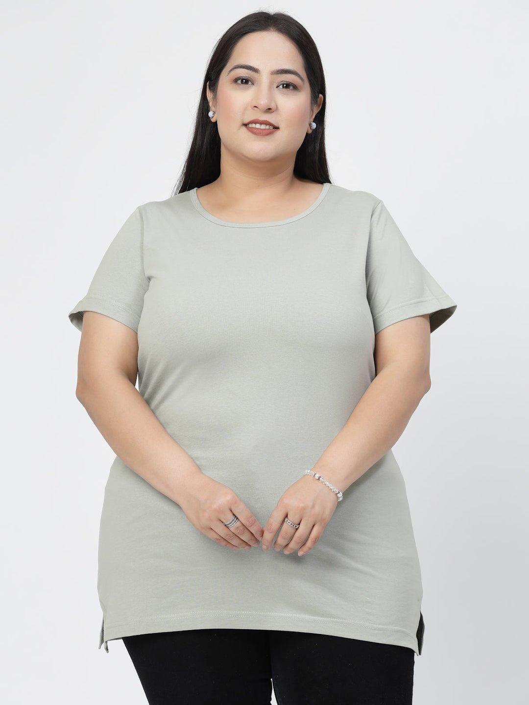 Plus Size Olive Round Neck Regular Fit Cotton Casual T-shirt