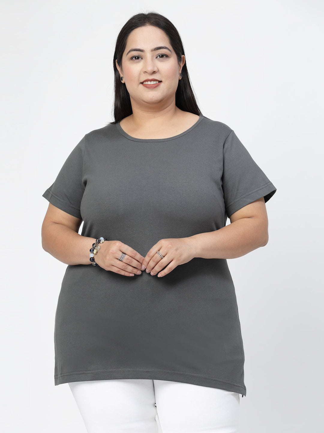 Plus Size Round Neck Short Sleeves Cotton Regular Fit T-shirt