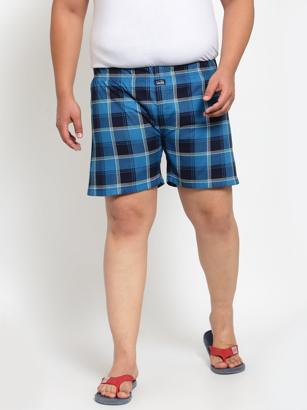 Plus Size Men Blue Pure Cotton Checked Boxers