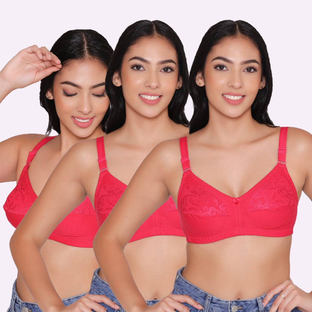 Women's Non Padded Non-Wired Regular Bra-VEGAS COMBO OF 3