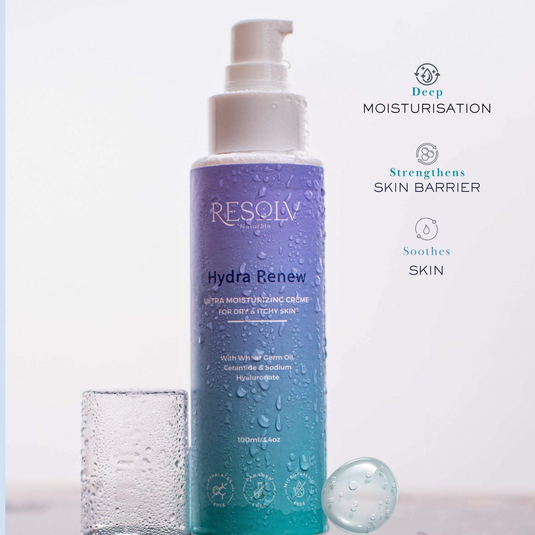 Say hello to deeply hydrated, radiant skin with HYDRA RENEW, the ultimate ultra-moisturizing creme. Infused with a powerhouse trio of wheat germ oil, ceramide, and sodium hyaluronate, this crème is your skin’s best ally for nourishment, repair, and long-lasting hydration.