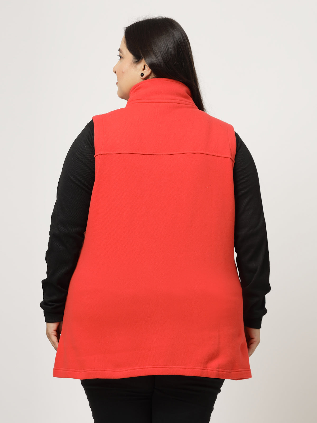 Plus Size Women Colourblocked Fleece Longline Tailored Jacket