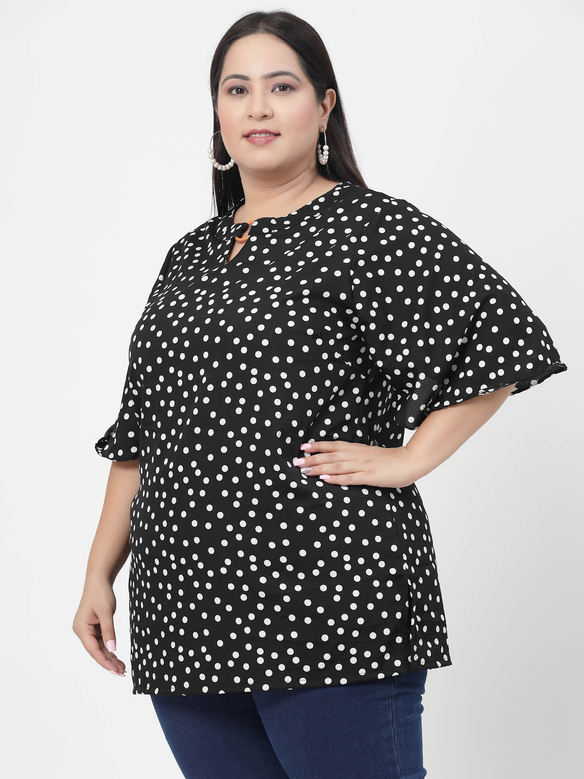 Plus Size Polka Dot Printed Flared Sleeves Top