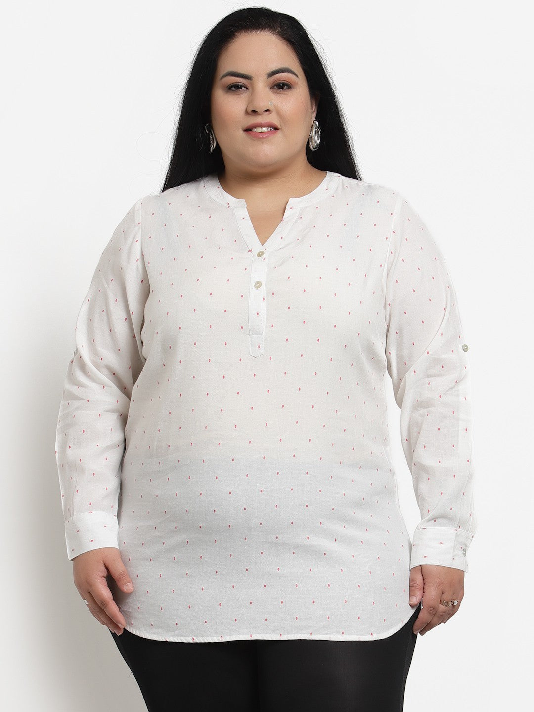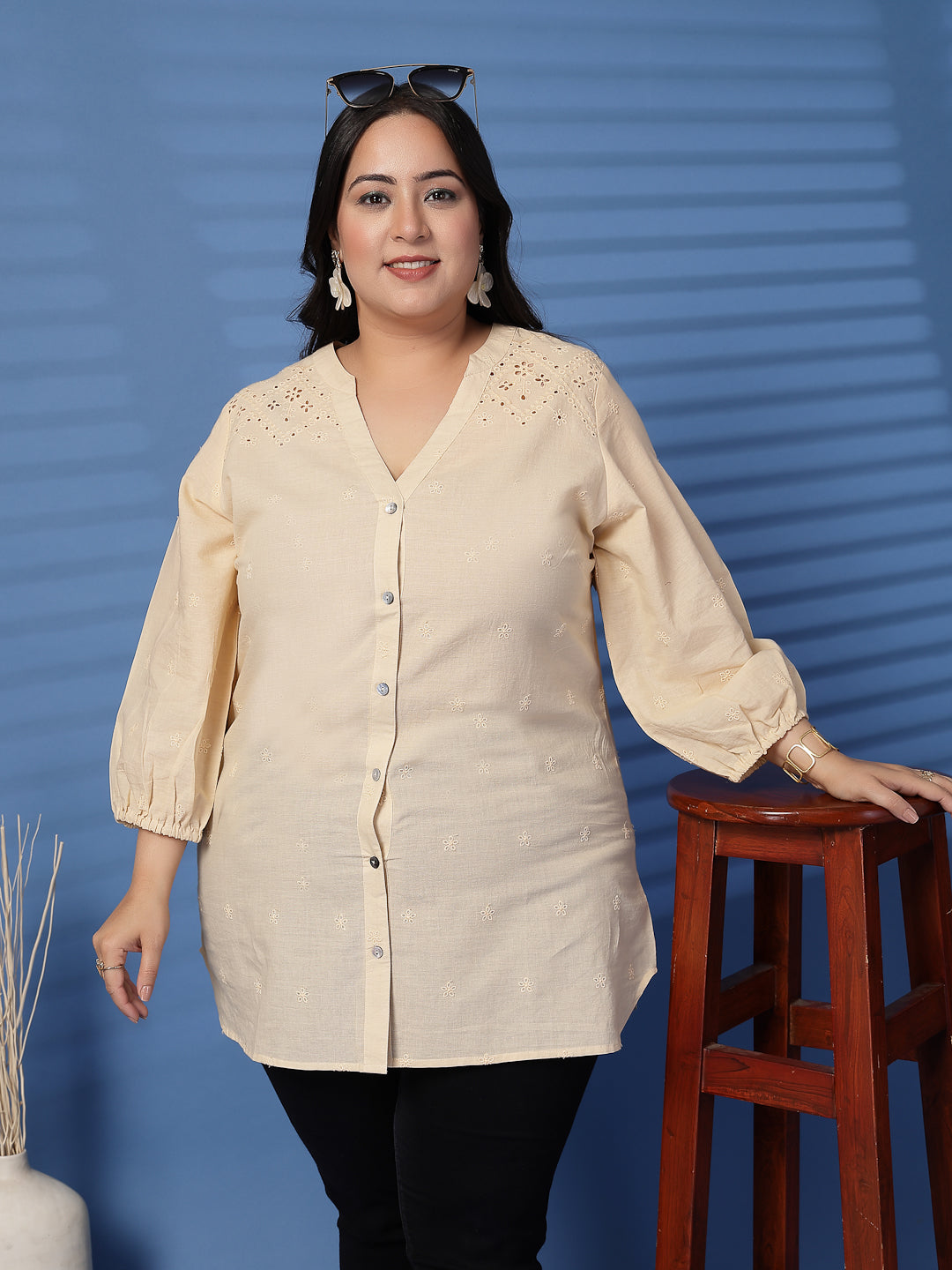 Plus Size Cotton Women Embroidered Spread Collar Shirt