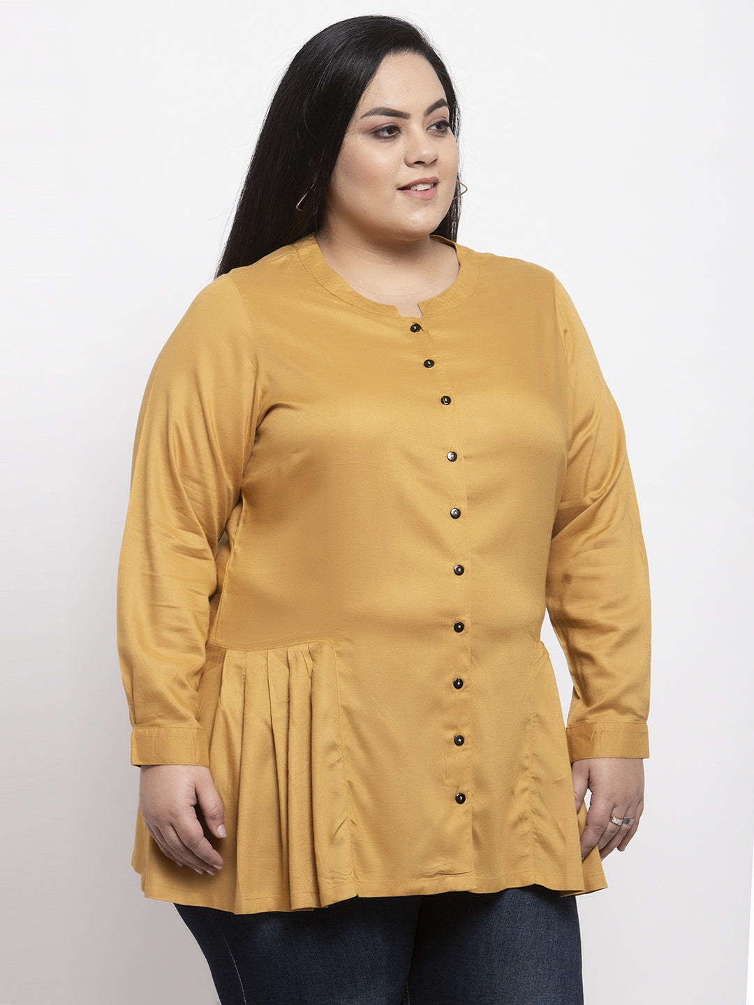 Plus Size Mustard Yellow Solid Tunic