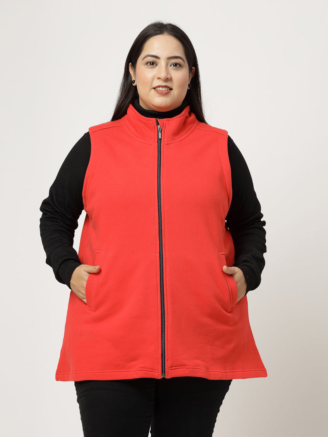 Plus Size Women Colourblocked Fleece Longline Tailored Jacket