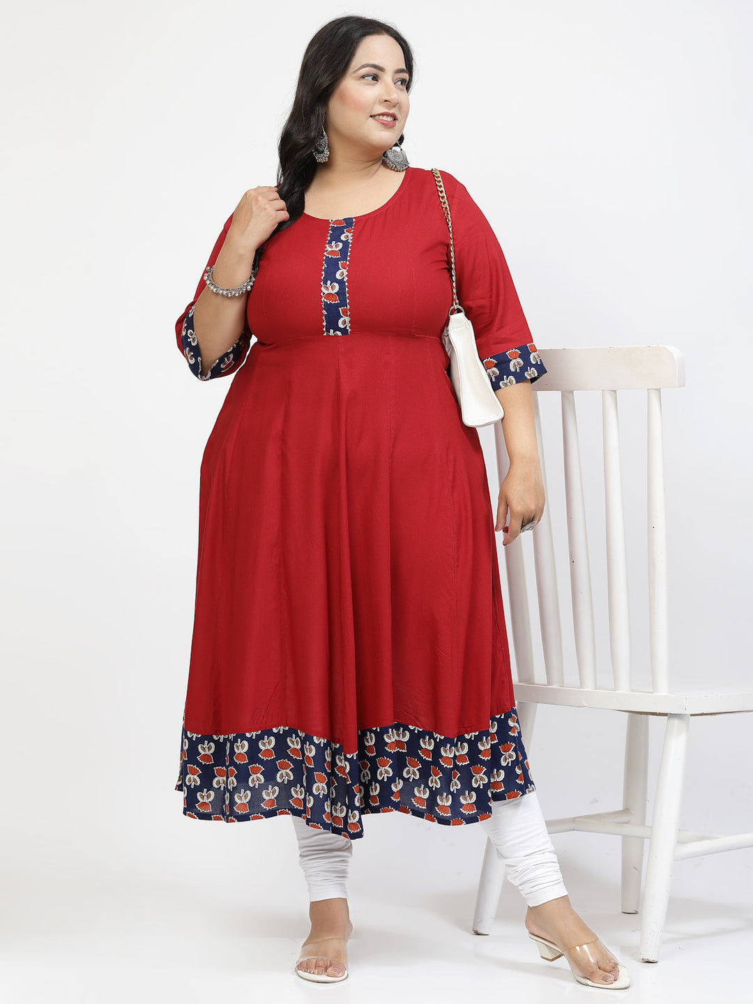 Plus Size Women Ethnic Motifs Embroidered Flared Sleeves Thread Work Kurta