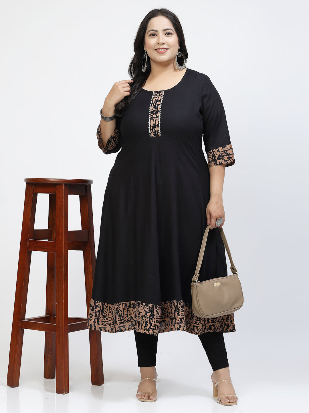 Plus Size Women Floral Printed Flared Sleeves Kurta