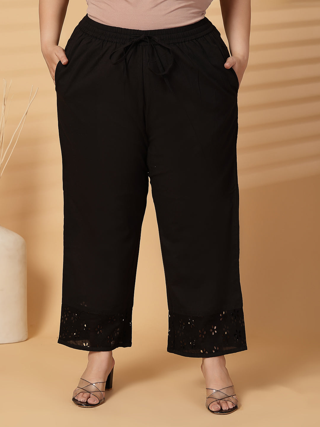 Plus Size Women Black Solid Wide Leg Palazzos