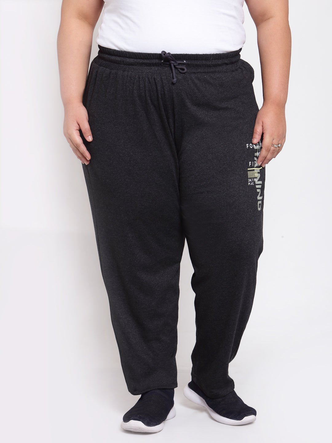 Plus Size Women Grey Solid Straight Fit Track Pants