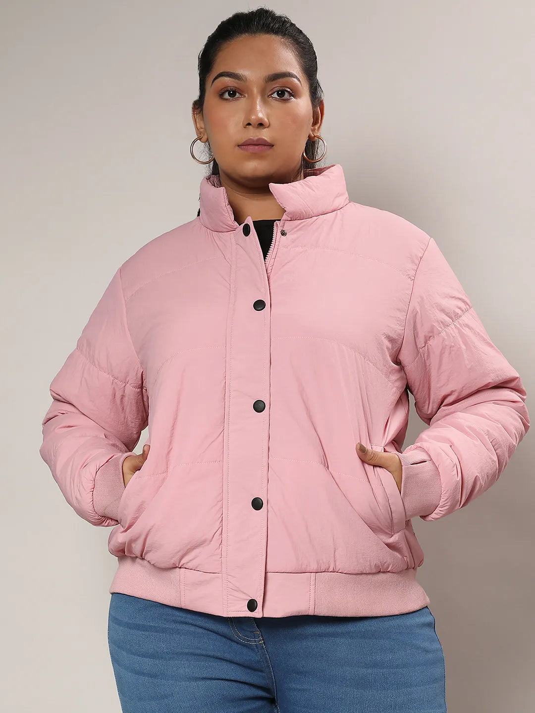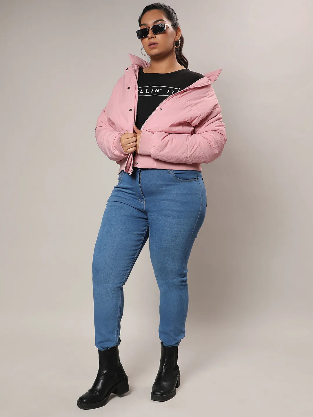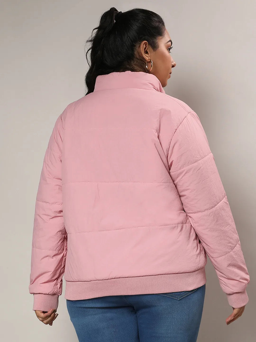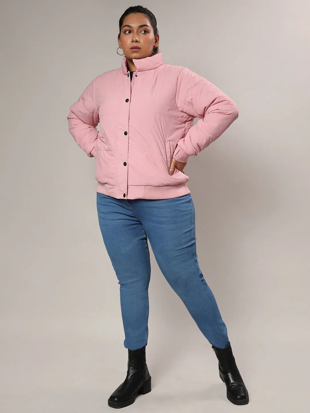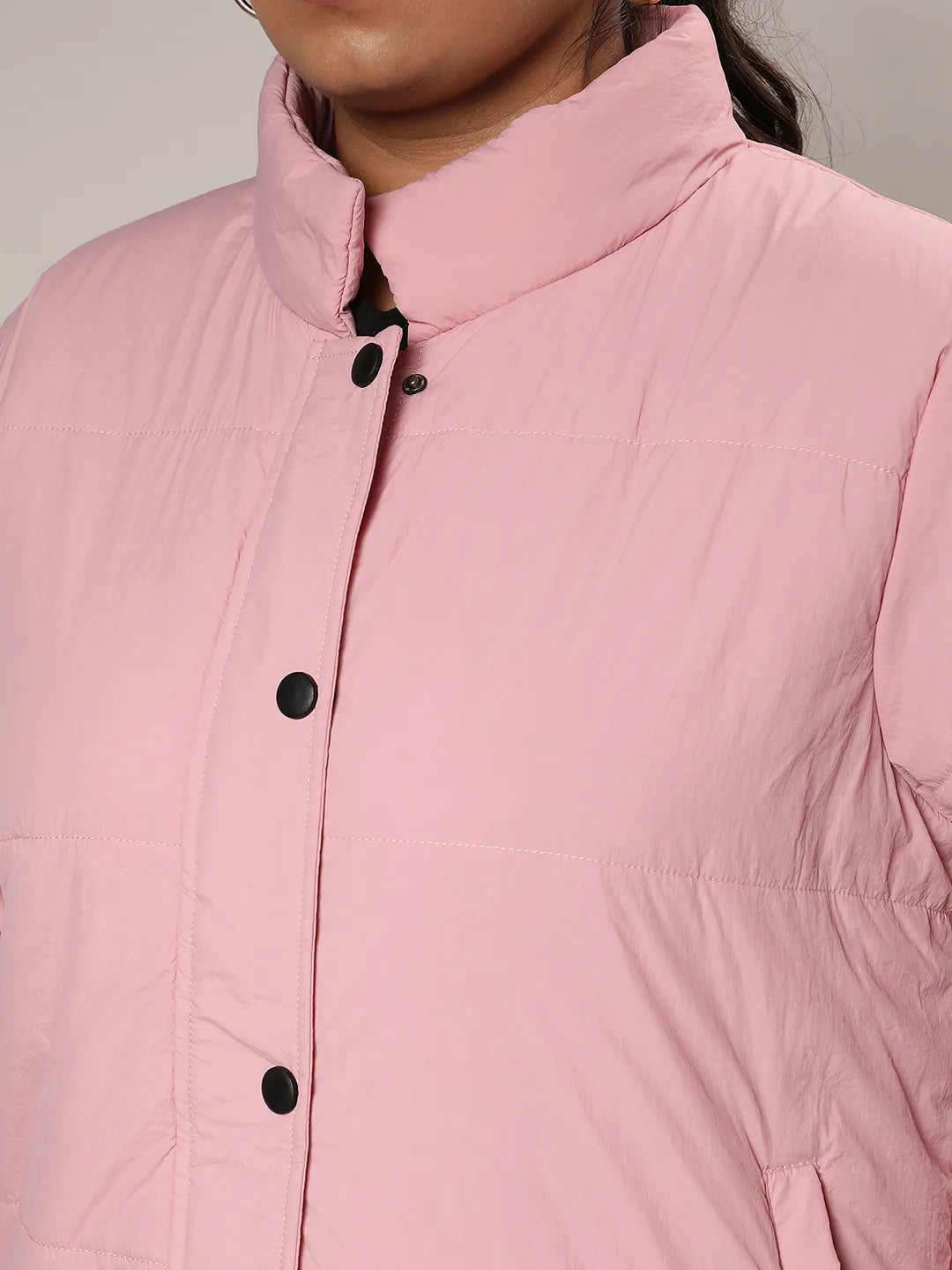 Blush Pink Puffer Jacket With Angled Open Pockets – Parfait Pluss