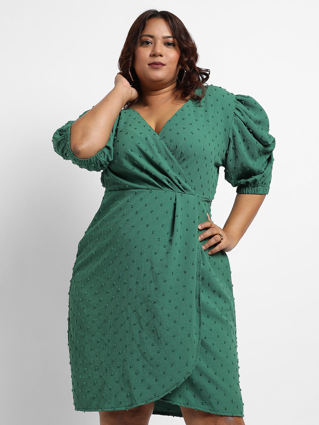 Forest Green Self-Design Petal Dress – Parfait Pluss