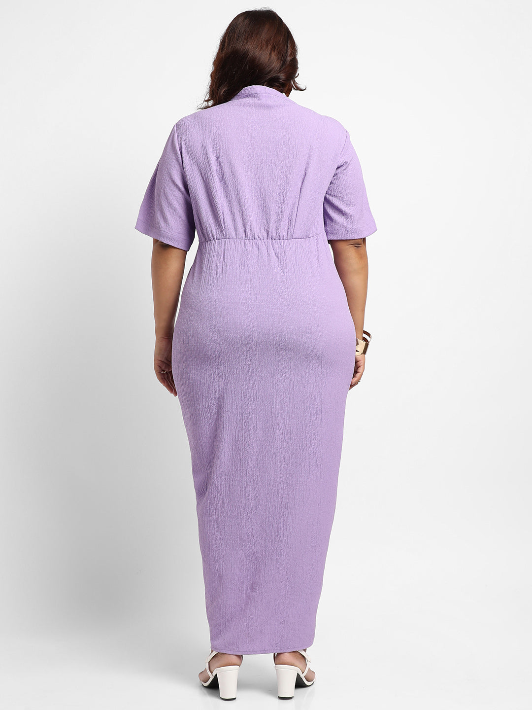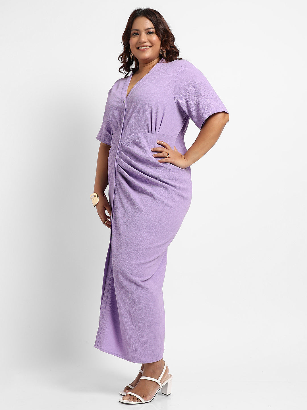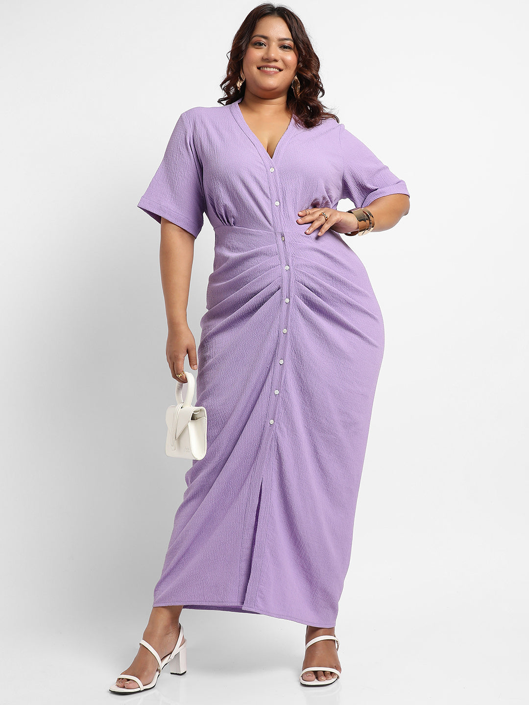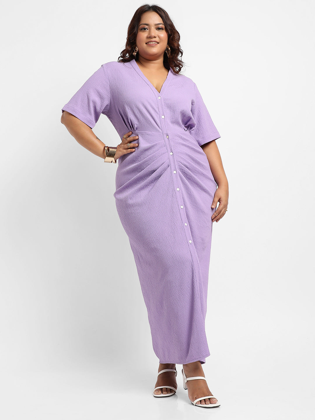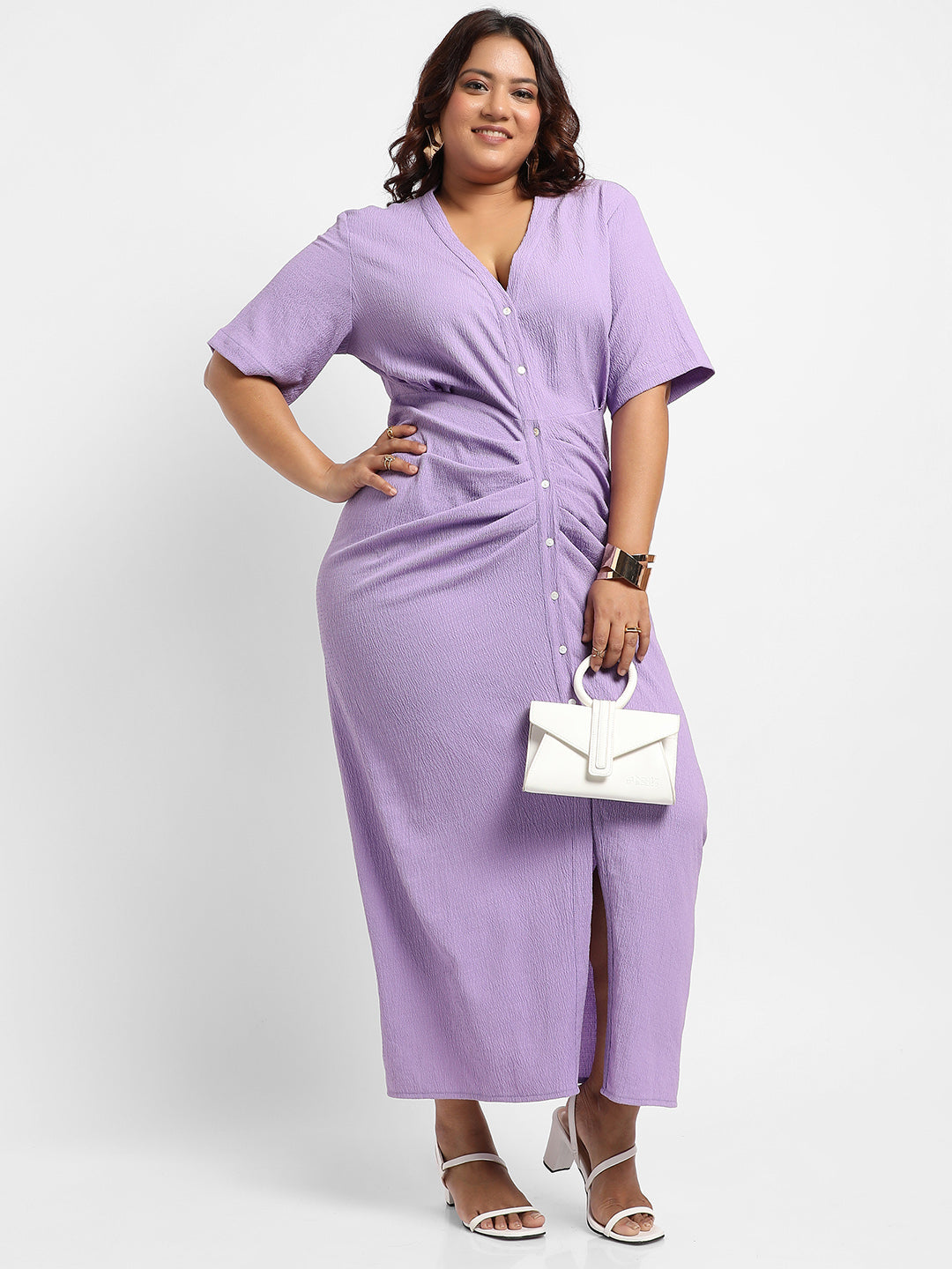 Lavender Button-Front Ruched Dress – Parfait Pluss