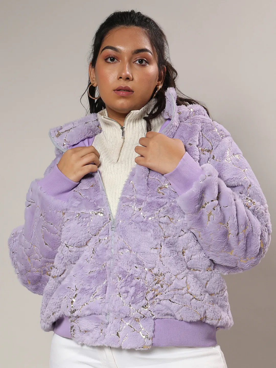 Lilac Metallic Veined Faux Fur Jacket – Parfait Pluss