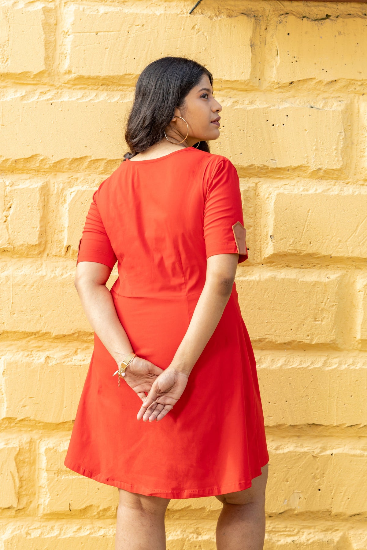 Red short dress with leather detailing