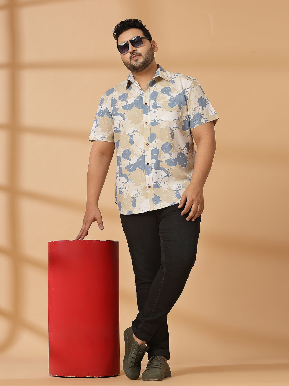 Floral Printed Spread Collar Cotton Opaque Casual Plus Size Shirt