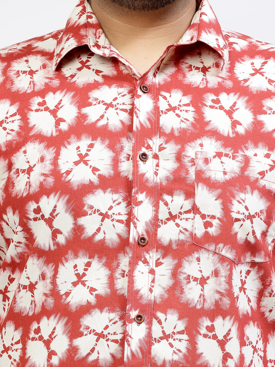 Floral Printed Spread Collar Long Sleeves Cotton Shirt