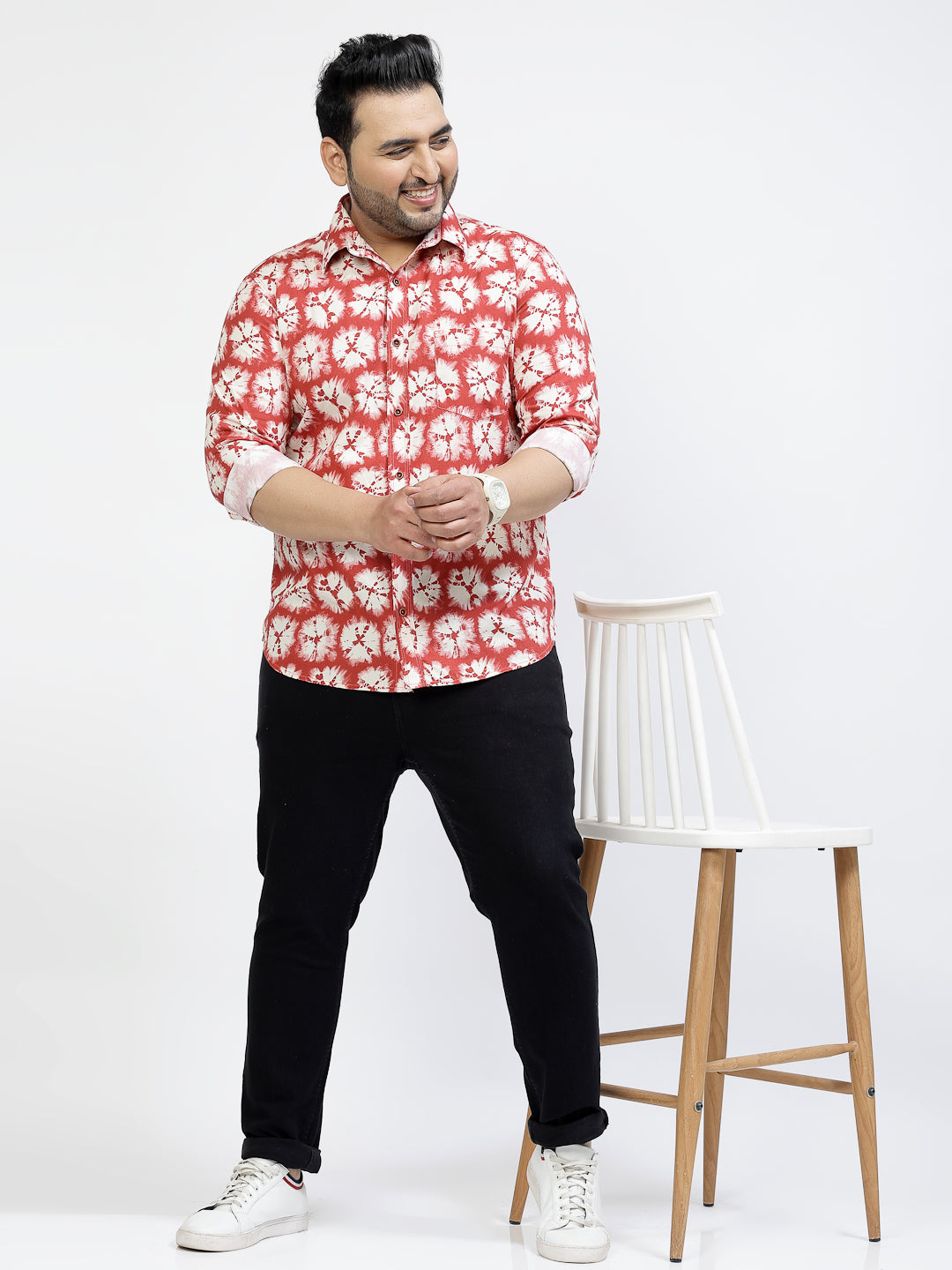 Plus Size Floral Printed Spread Collar Long Sleeves Cotton Shirt